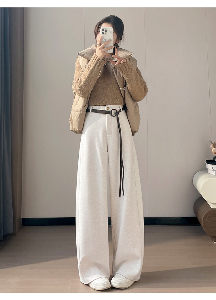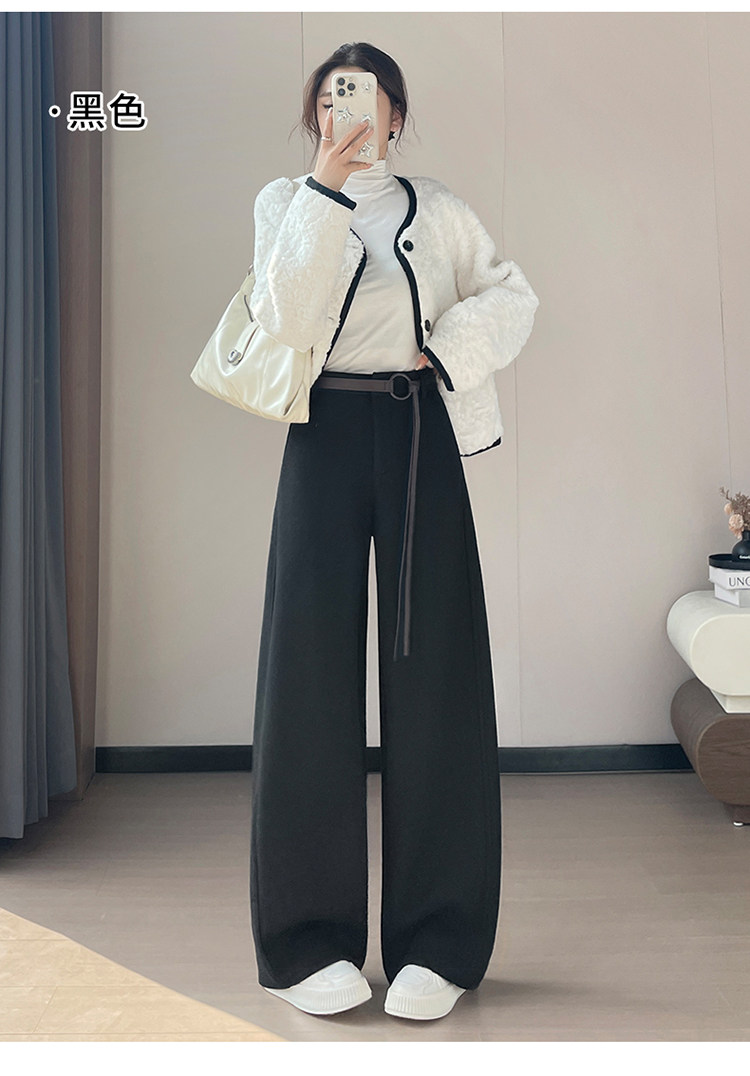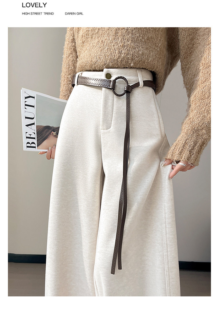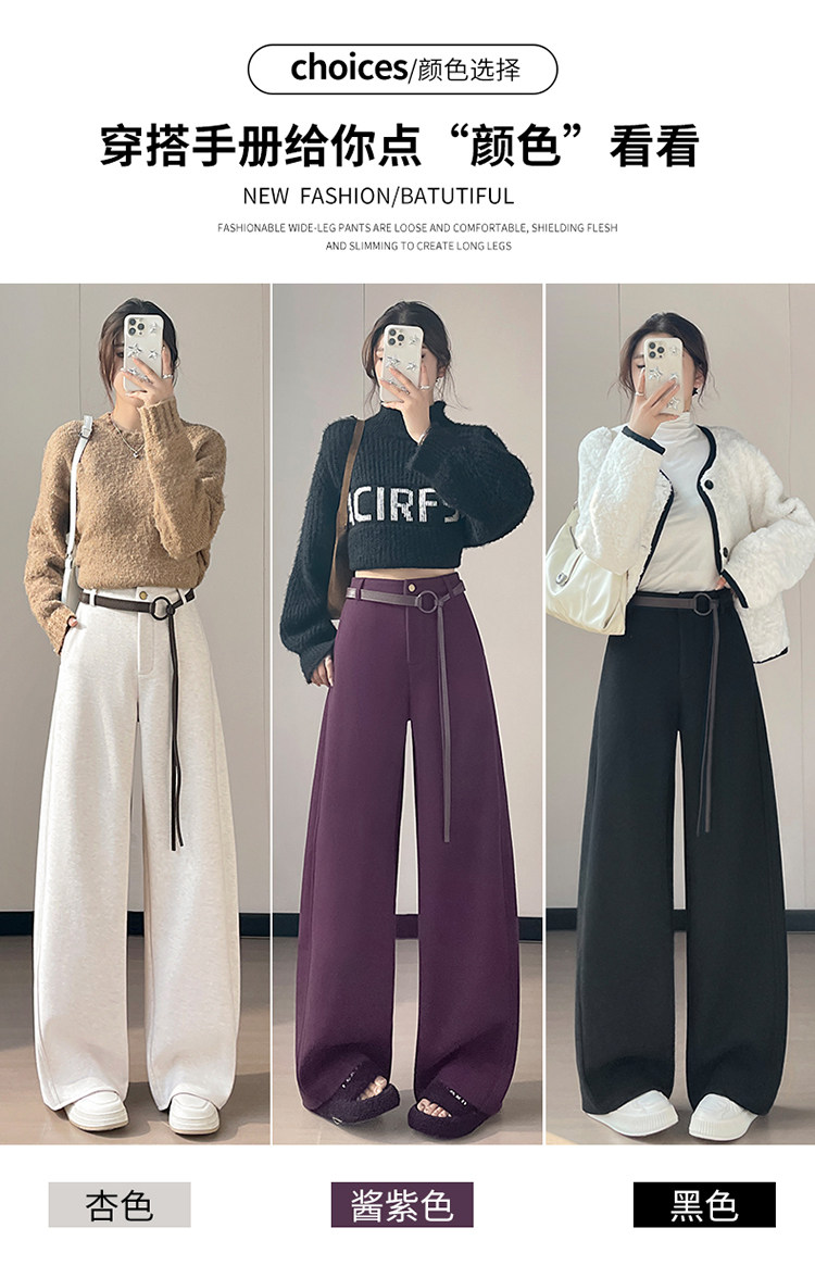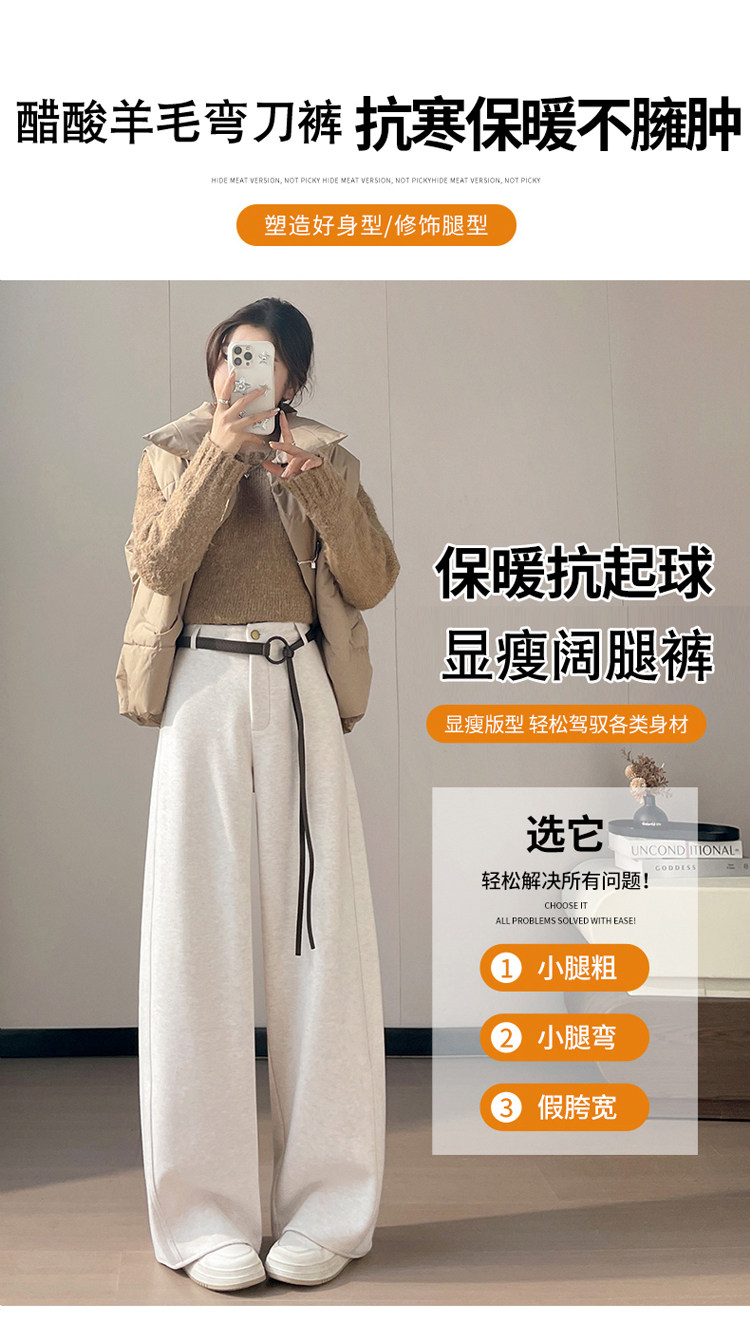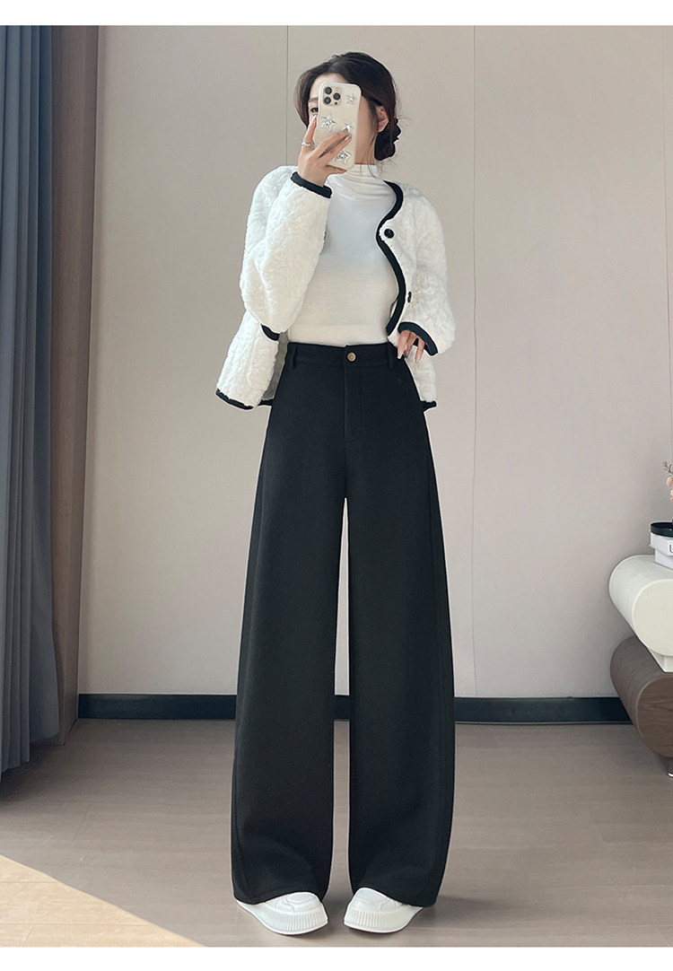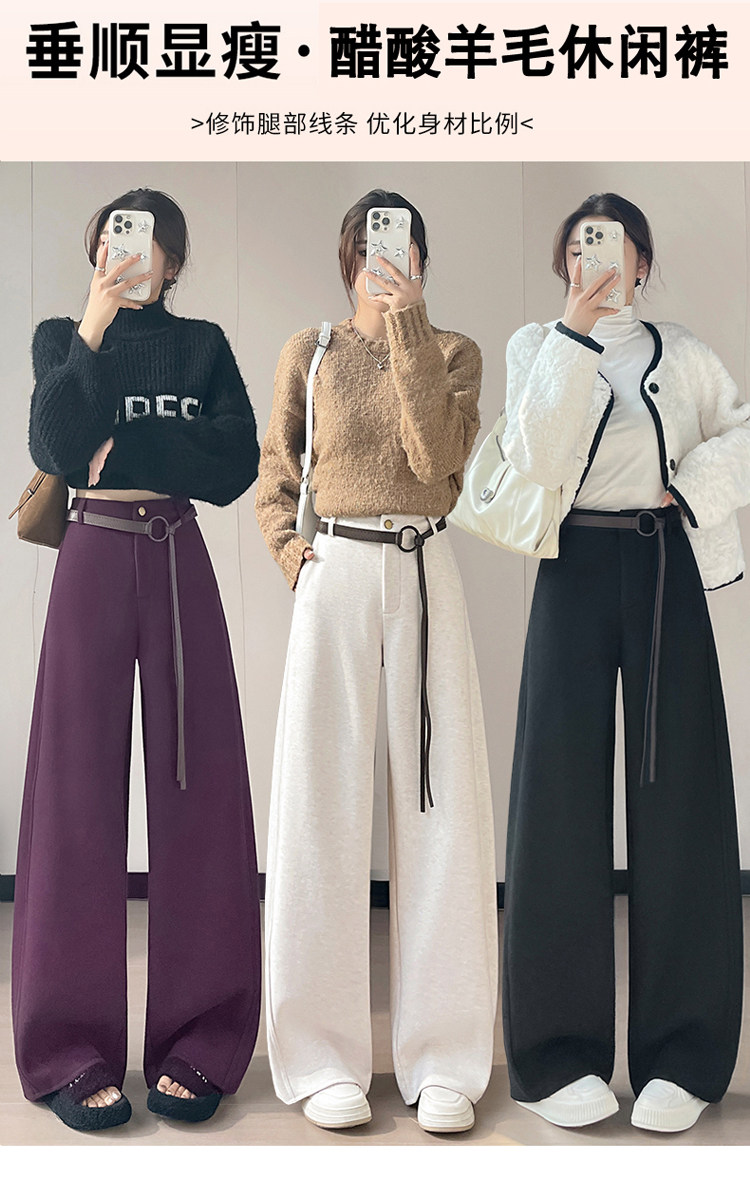 Velvet and thickened woolen wide-leg pants for women 2025 new winter super popular pants high-waisted casual suit pants