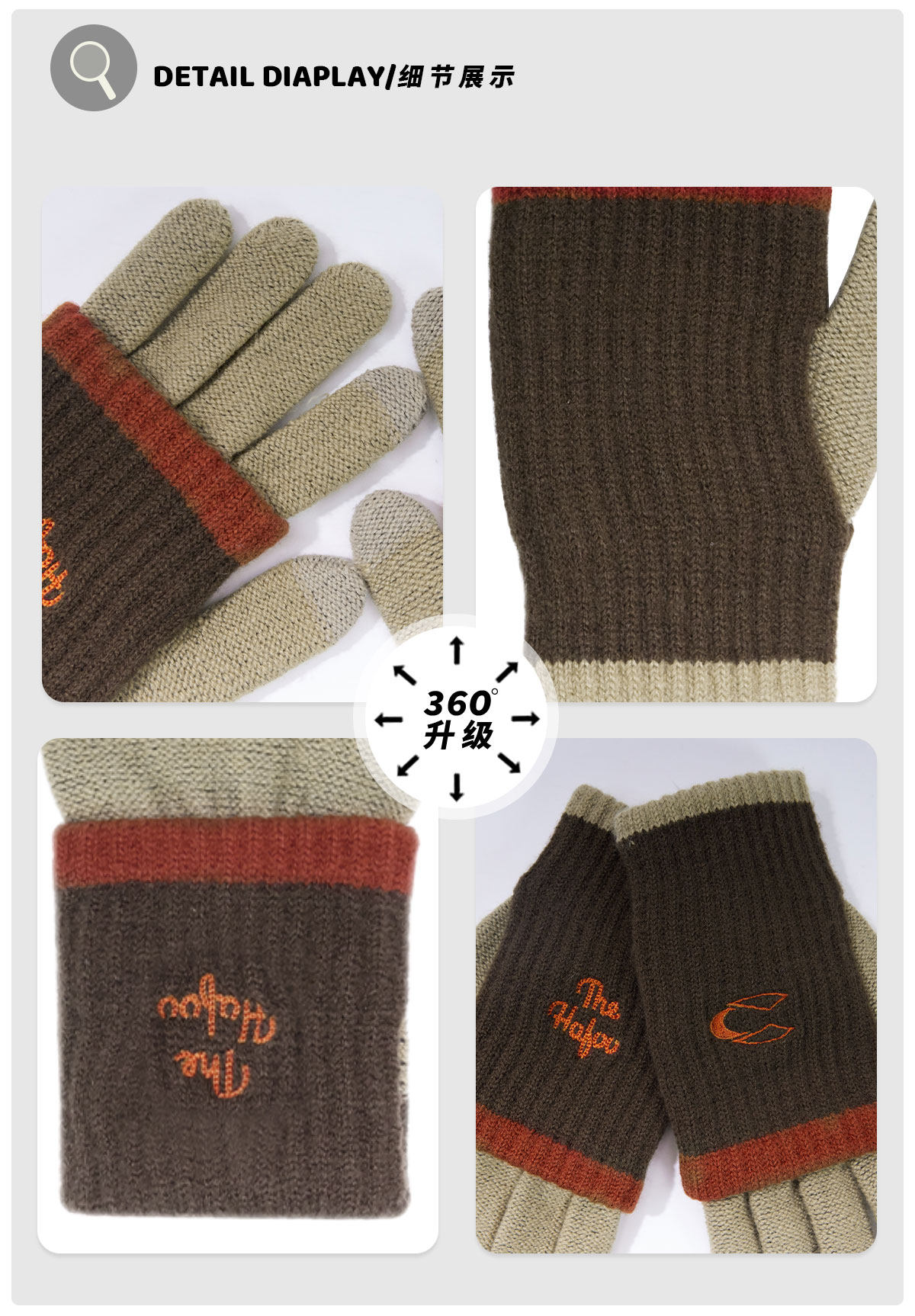 Original small embroidery double-layer warm gloves for women in winter outdoor cycling cold-proof finger gloves for men