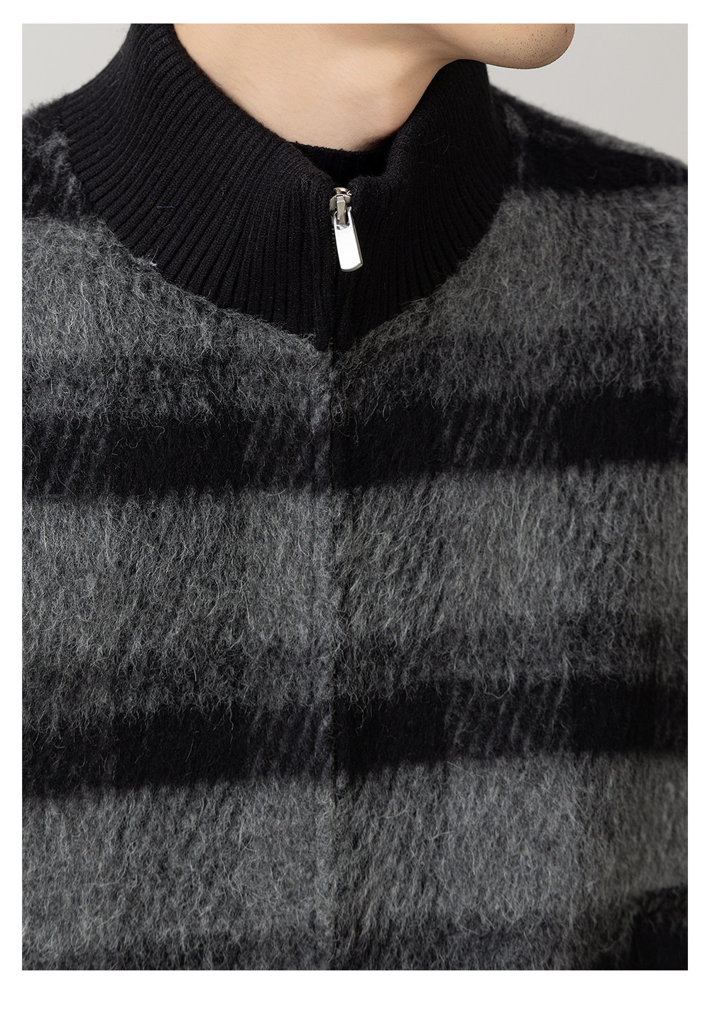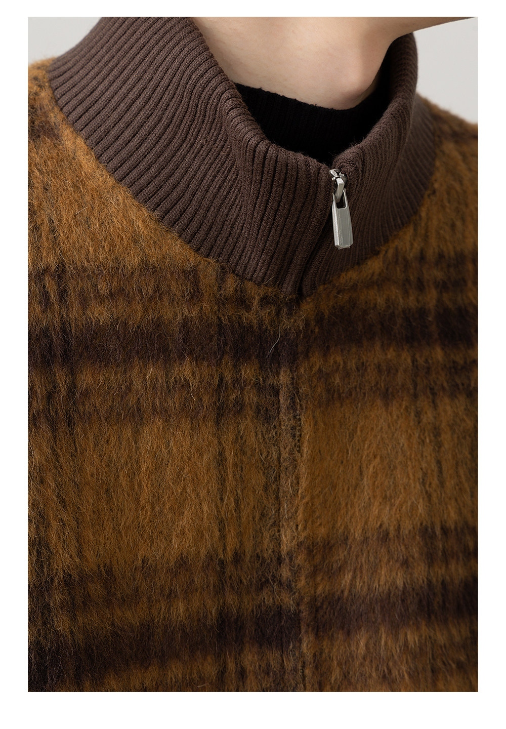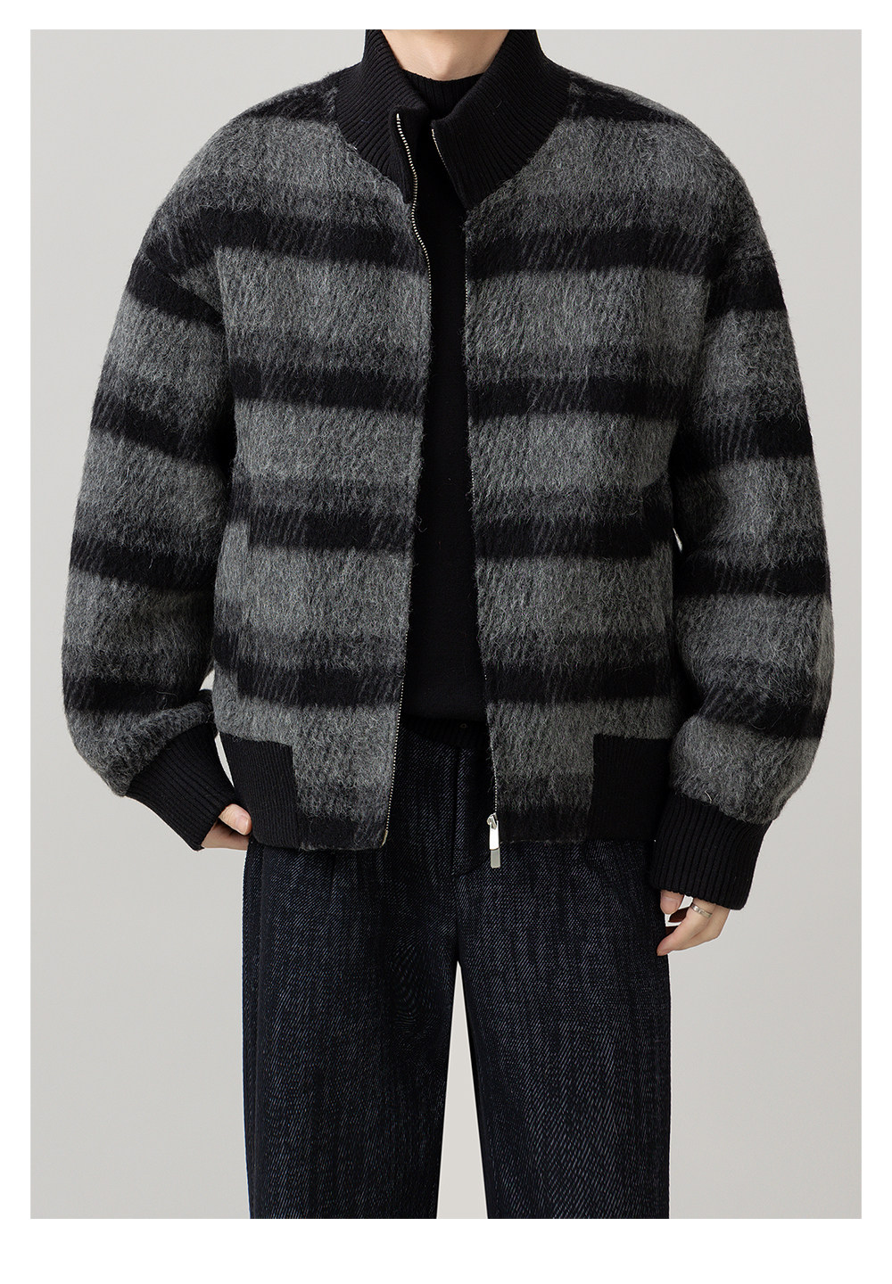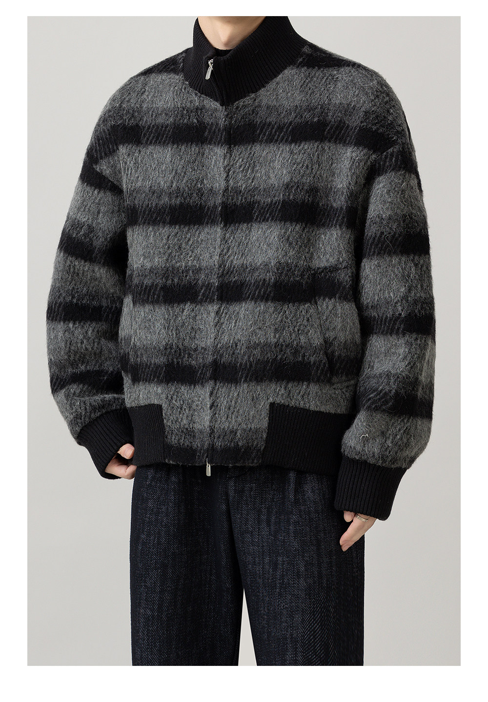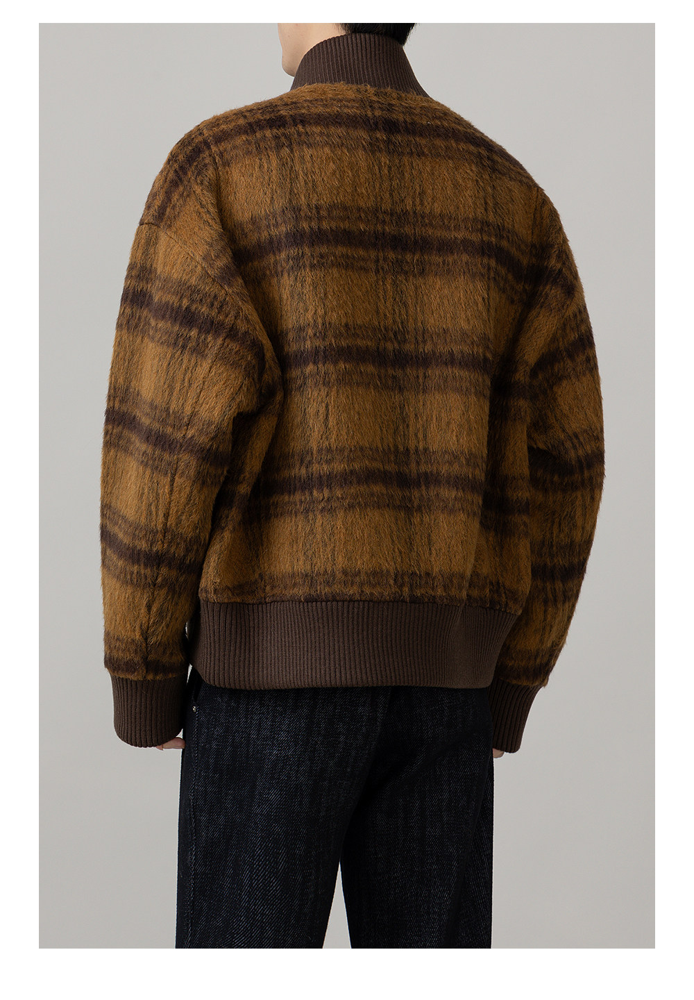 Retro Trendy Alpaca Blended Jacket Men's Stand Collar Handsome Loose Fashionable Autumn and Winter New Checkered Wool Jacket
