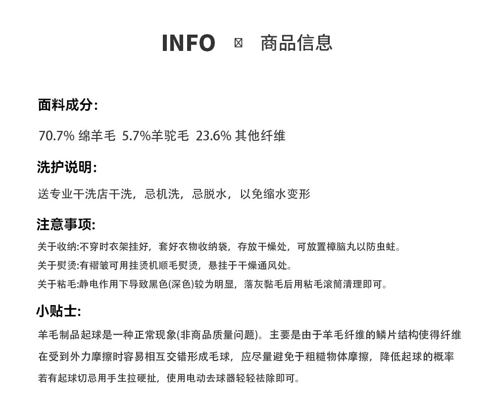 Material ingredients Sheep wool 70.7%, other materials 23.6%, alpaca 5.7%