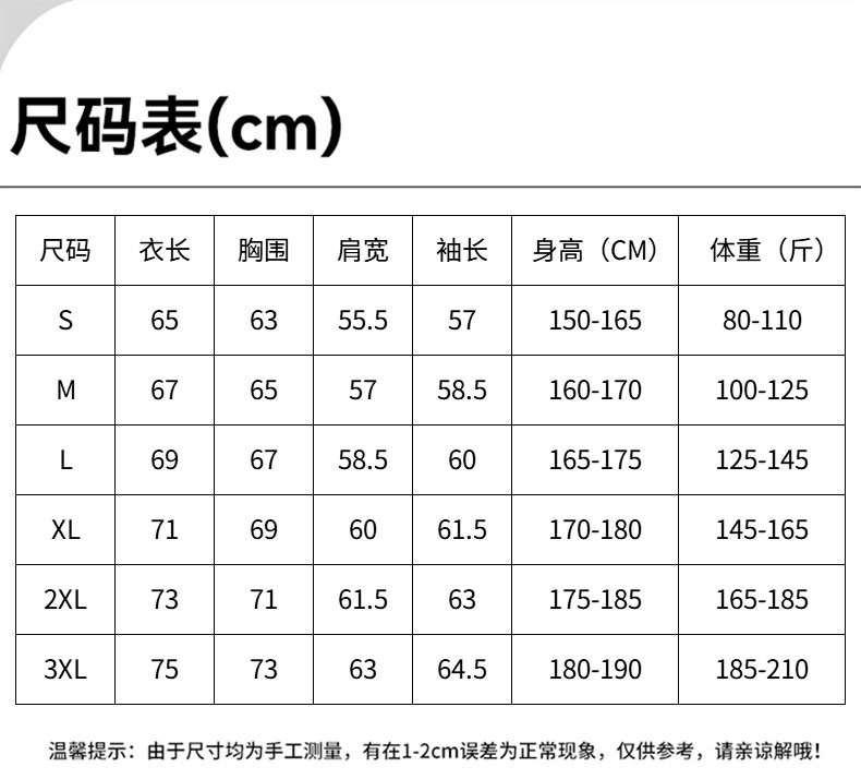 China (cm) 165 / 88-90 170 / 96-98 175 / 108-110 180 / 118-122 185 / 126-130