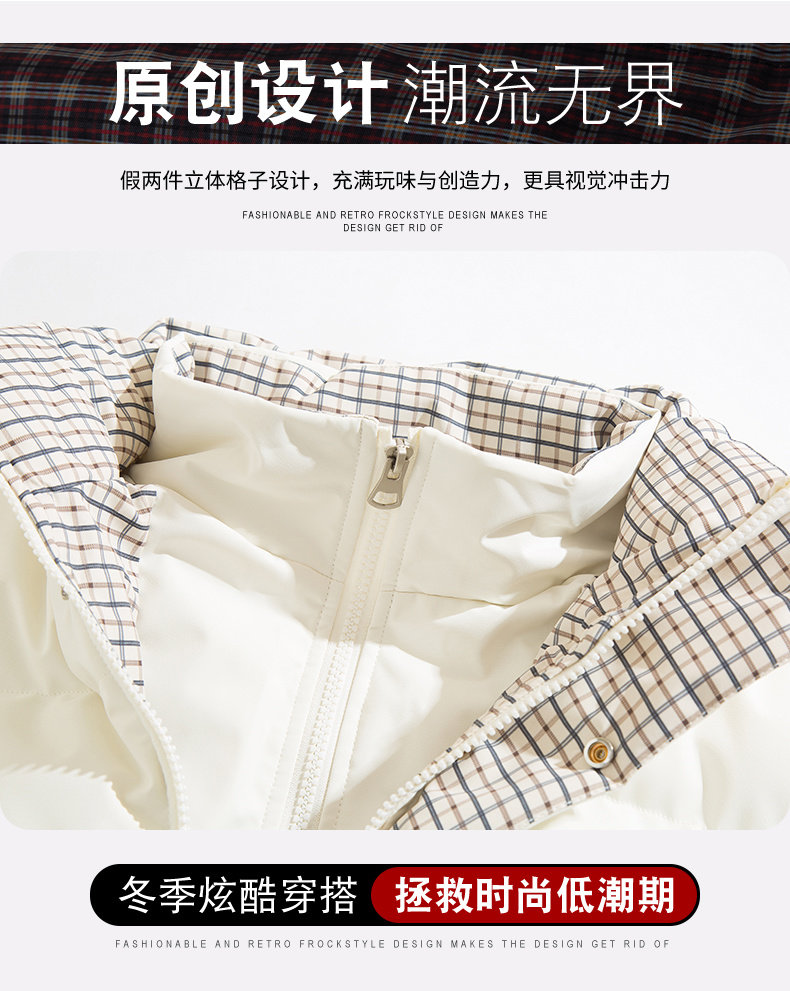 WASSUP DOZEN cotton coat couple's model thickened 2025 new fake two-piece stitching contrasting color bread jacket for men