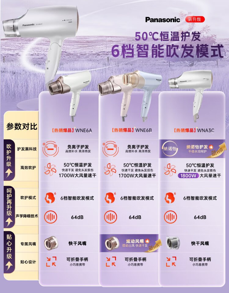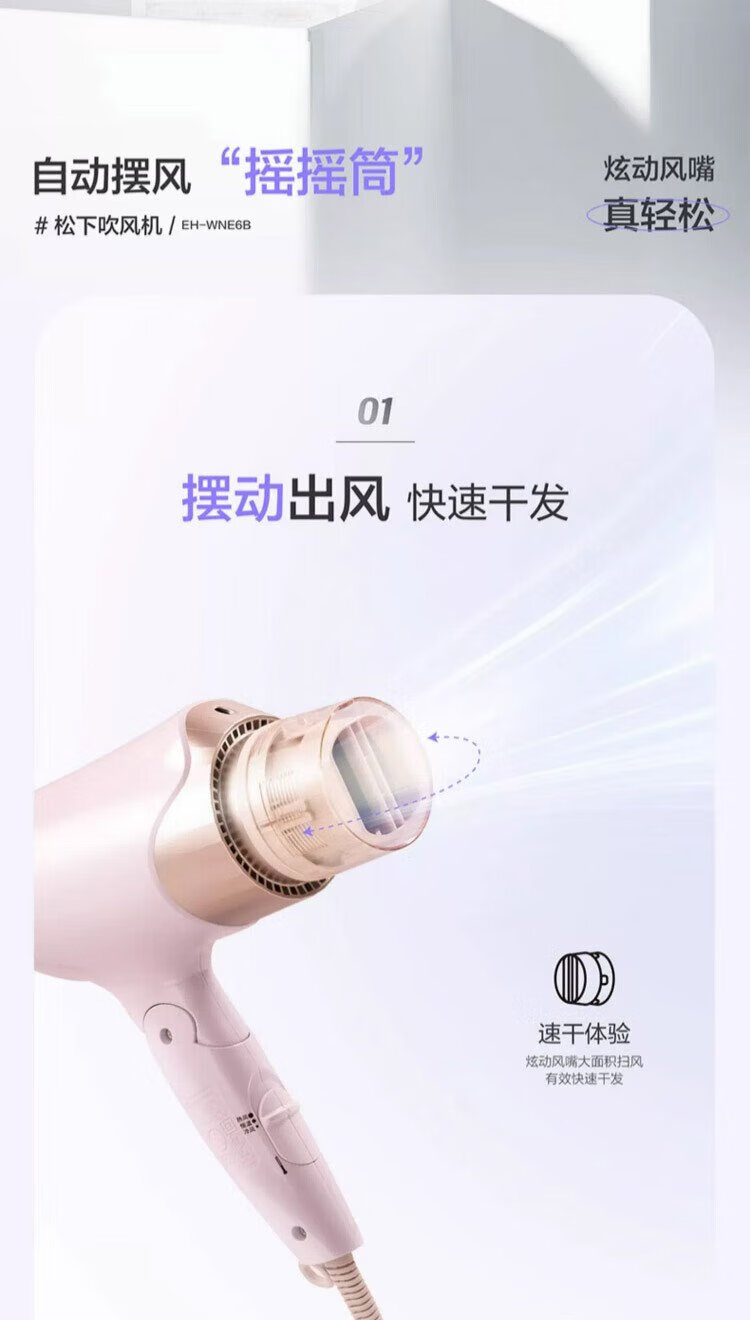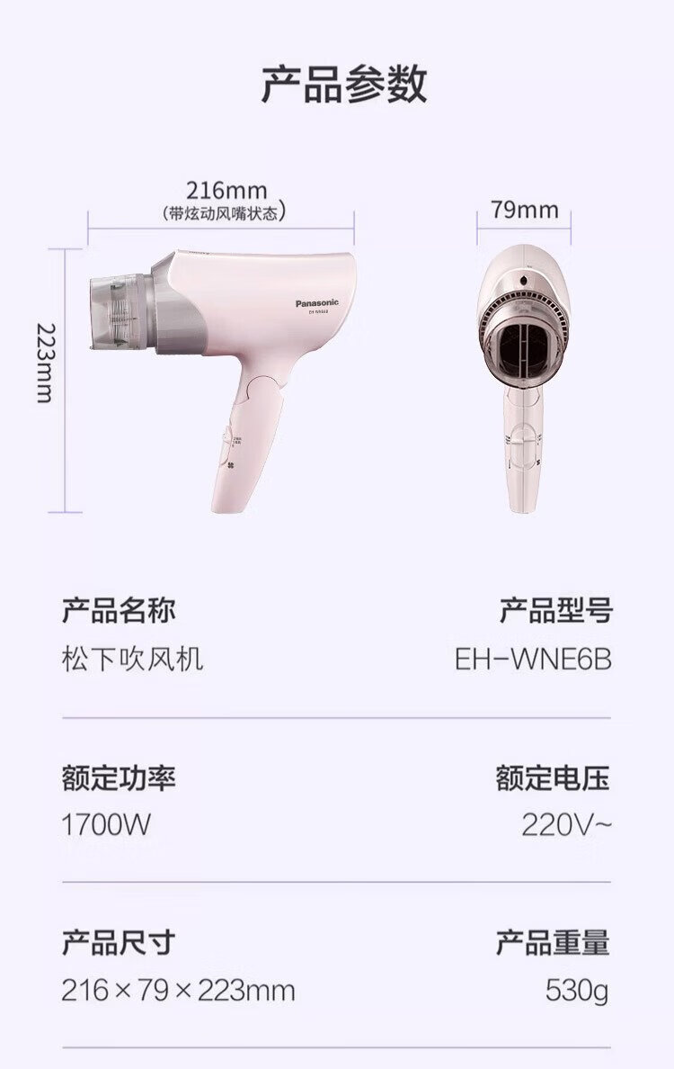 Panasonic's state-subsidized negative ion hair dryer barrel, high-speed, high-power, non-damaging, home-use, low-noise, fast drying, hair care, gift for girlfriend EH-WNE6B