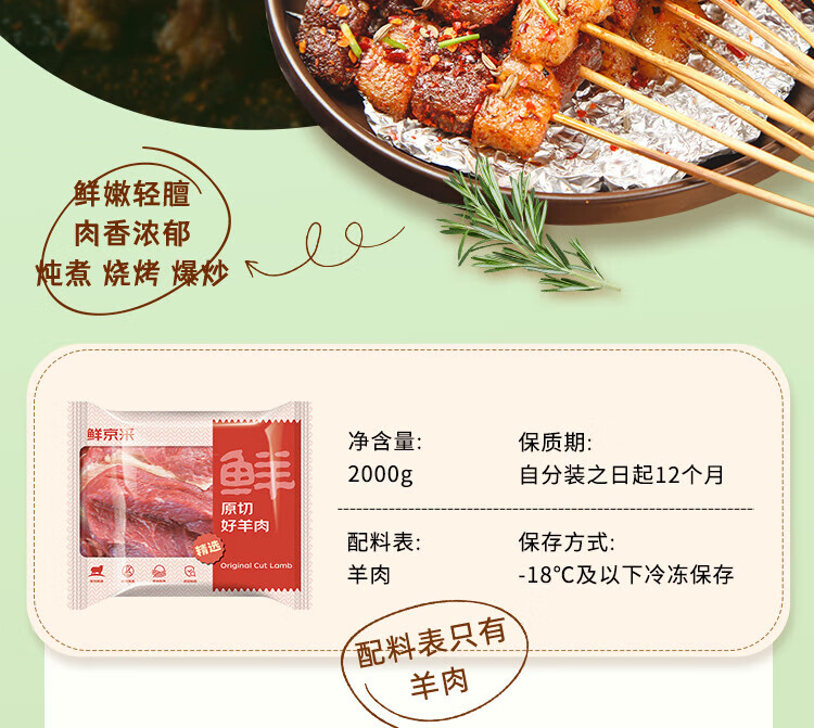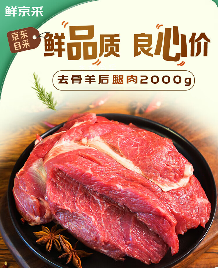 Xianjingcai imported raw boneless lamb hind leg meat 4Jin Jin equals 0.5kg BBQ stew ingredients mutton JD.com’s own brand