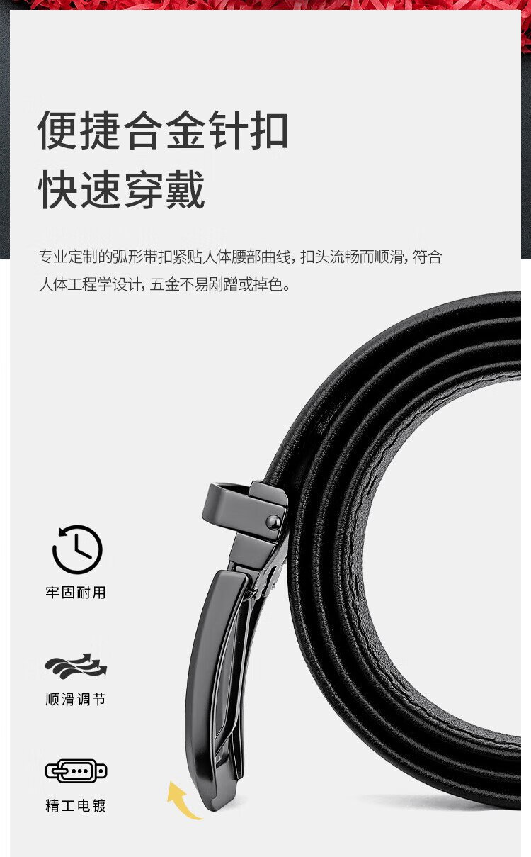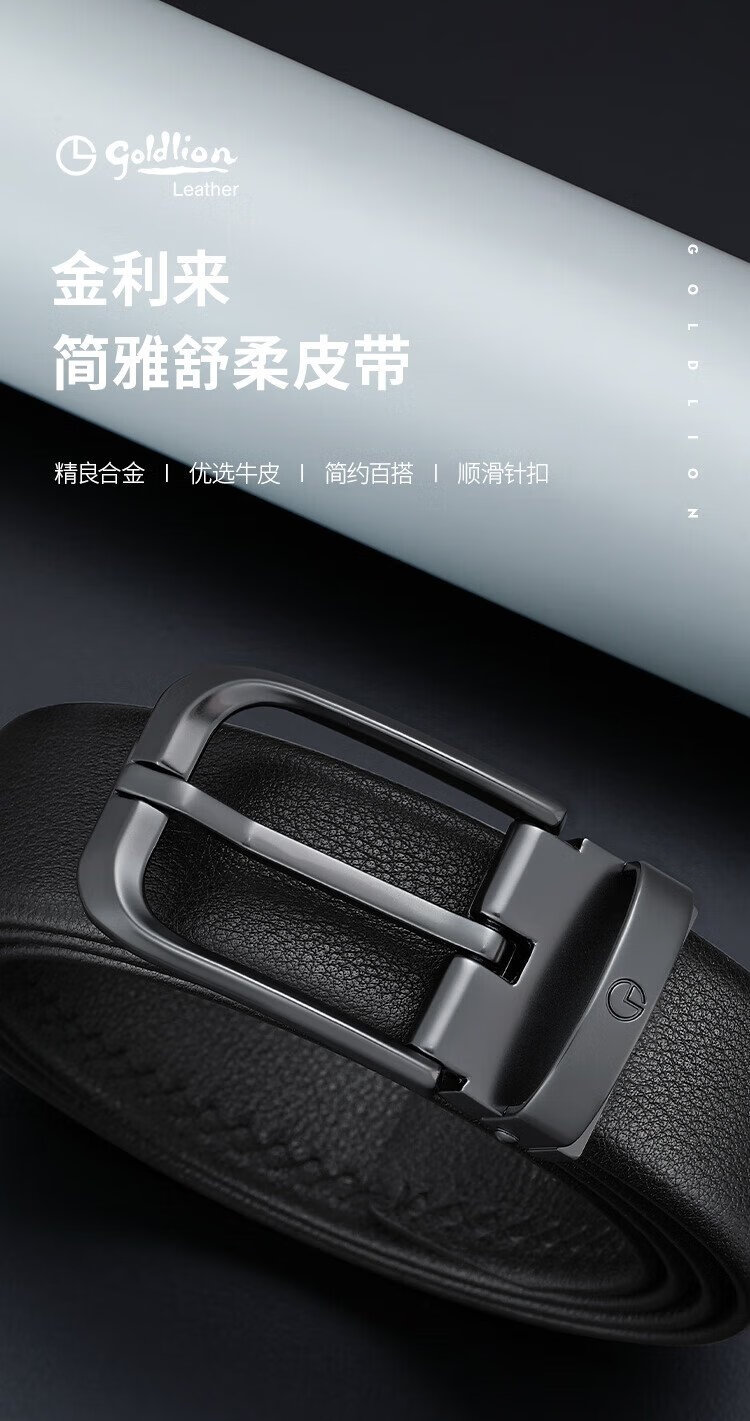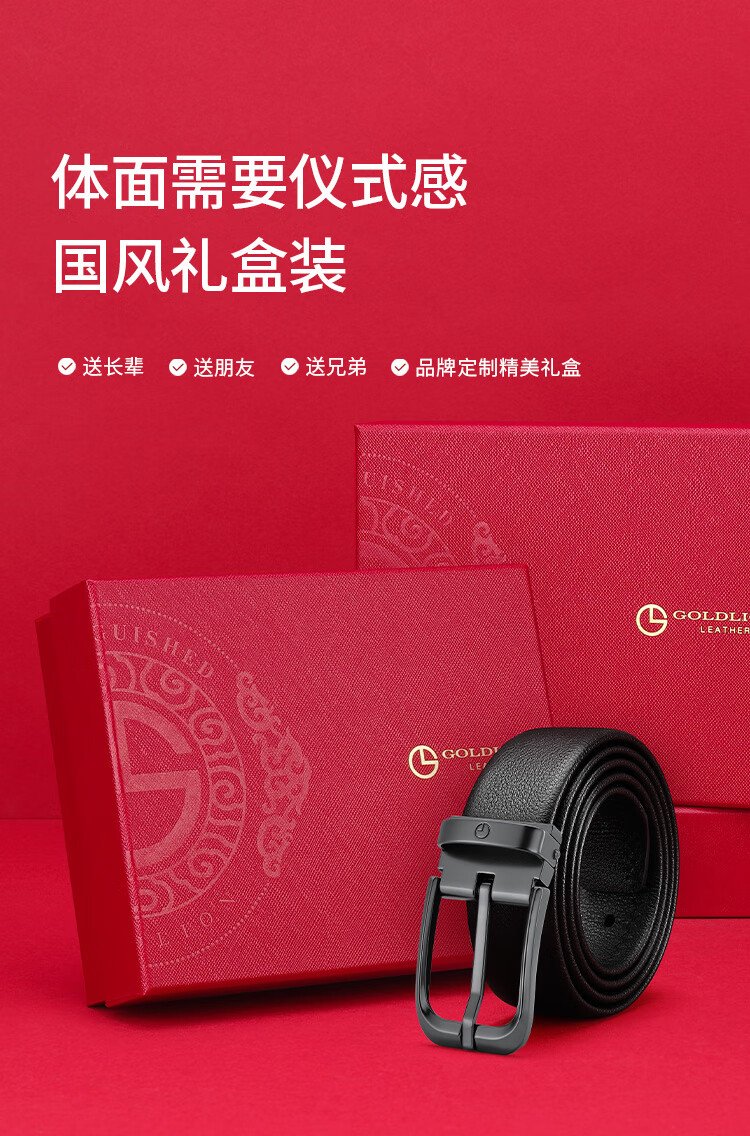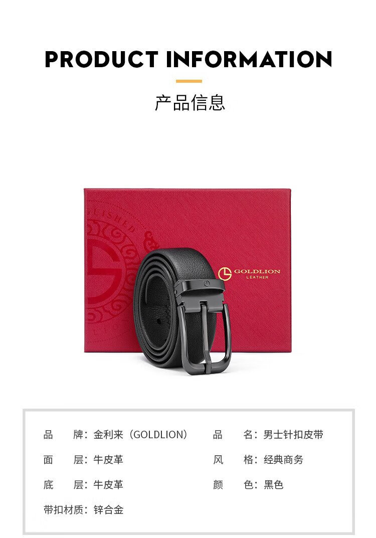 Goldlion Belt Men's Pin Buckle First Layer Cowhide Pants Belt Men's Gift Box Belt Birthday Gift for Dad