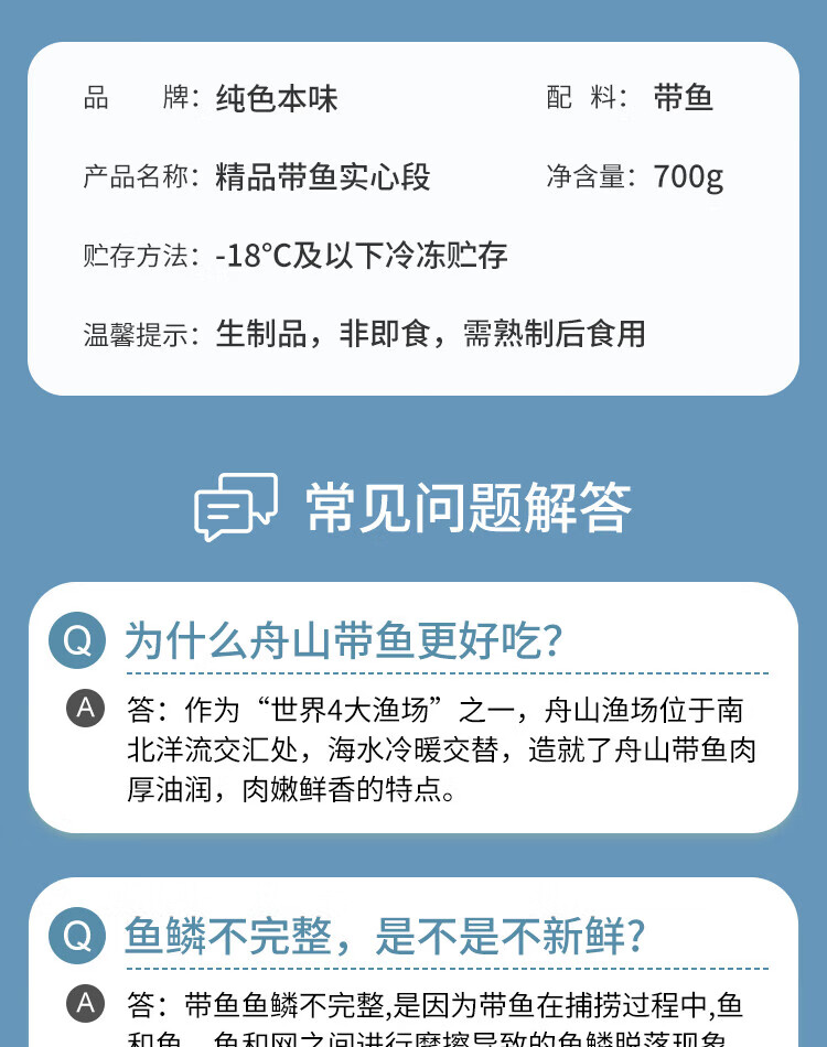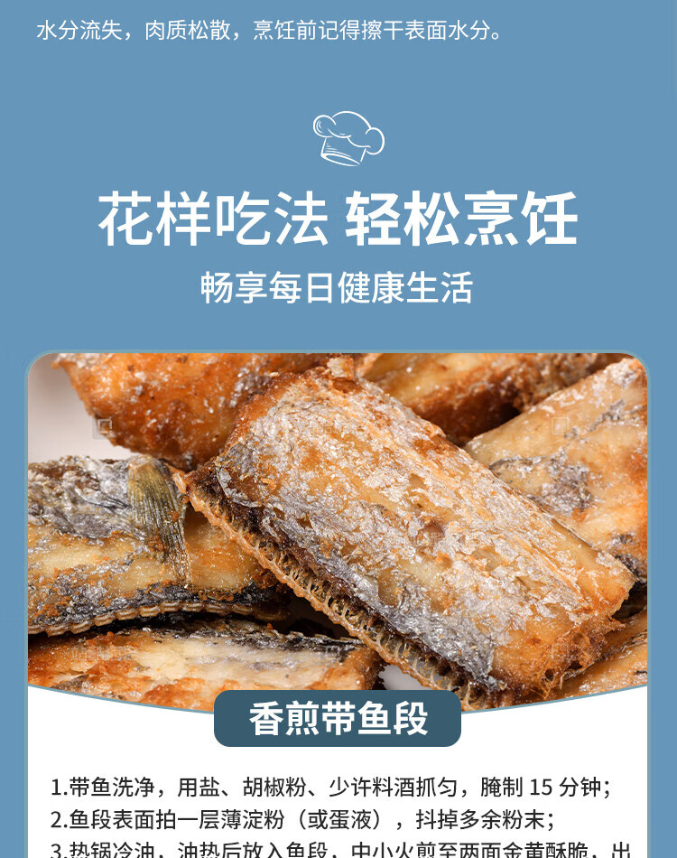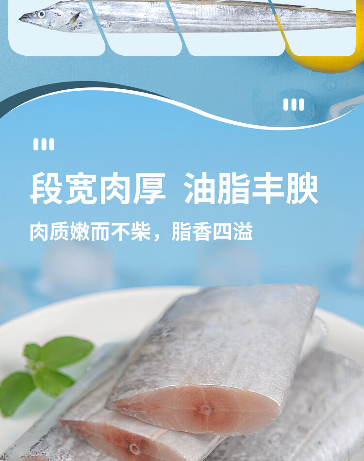 Pure color and original flavor Zhoushan premium hairtail solid section 700g BBQ meat section from one fish fresh fish
