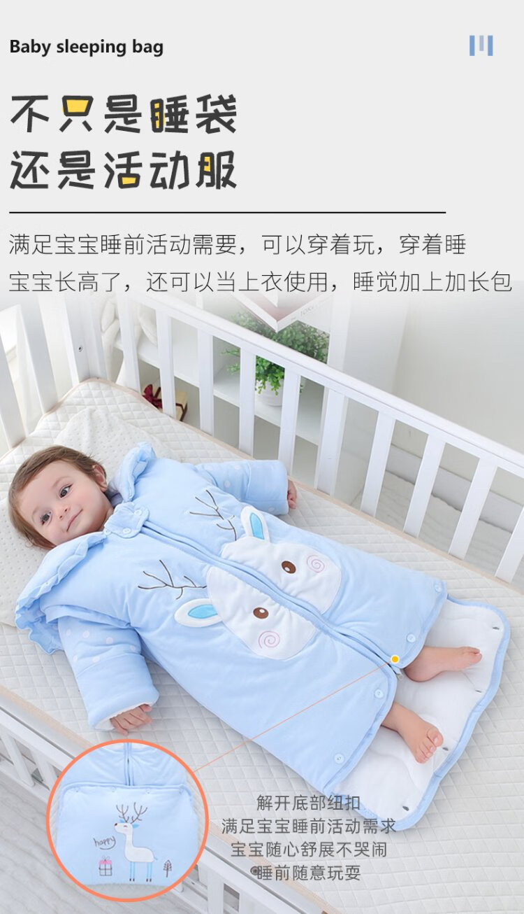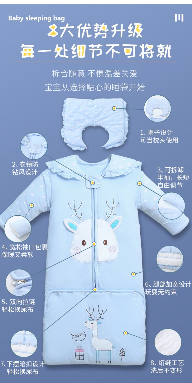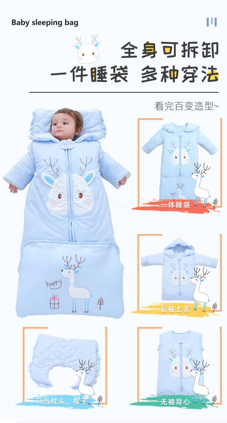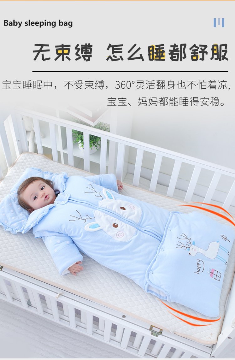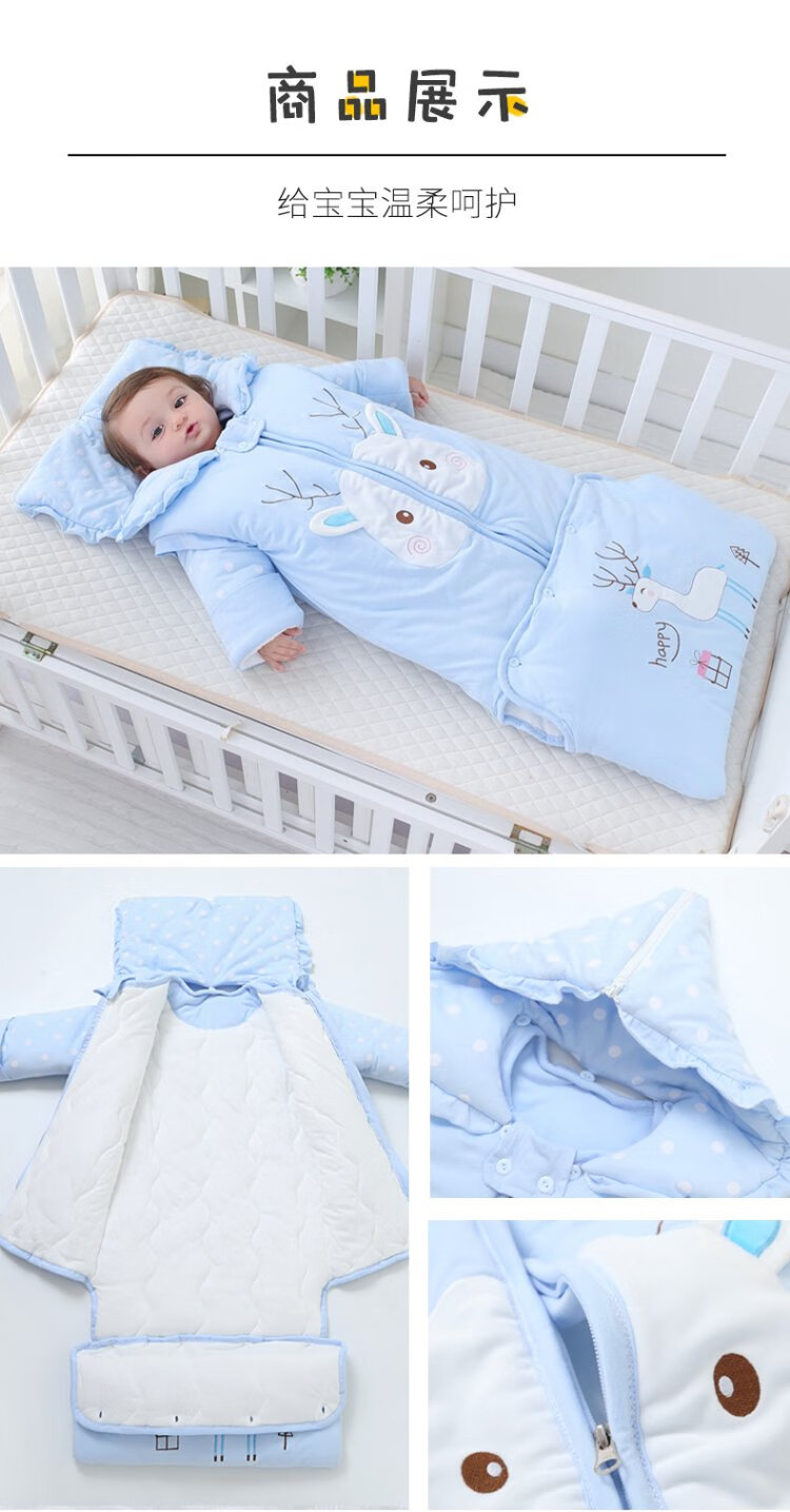 Baby-faced baby sleeping bag, large children's anti-kicking quilt, baby's removable sleeves, extended bag, newborn autumn and winter thickened quilt