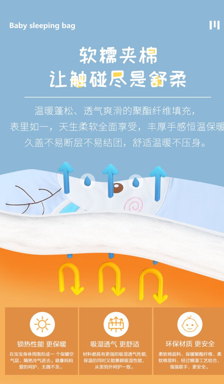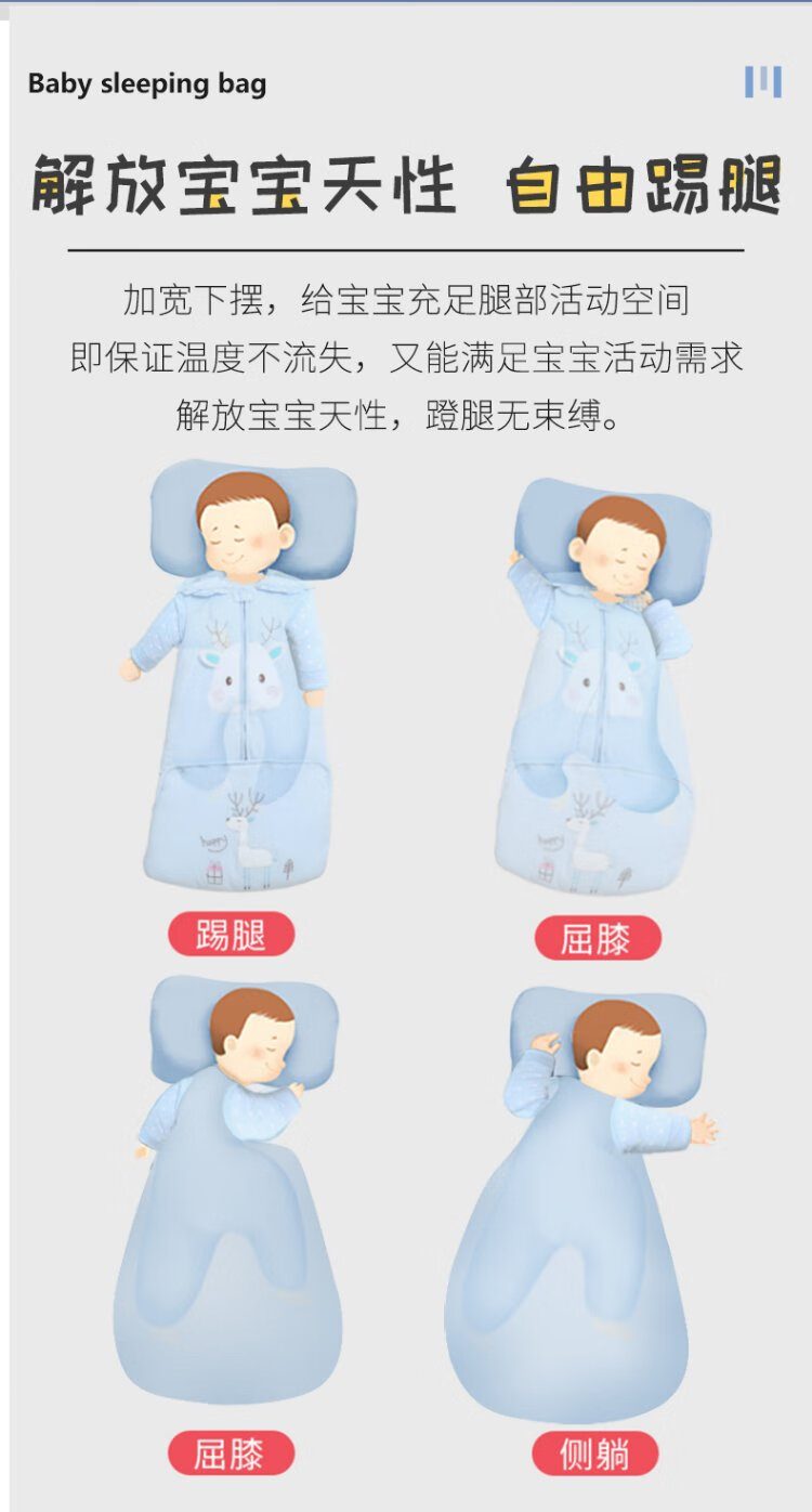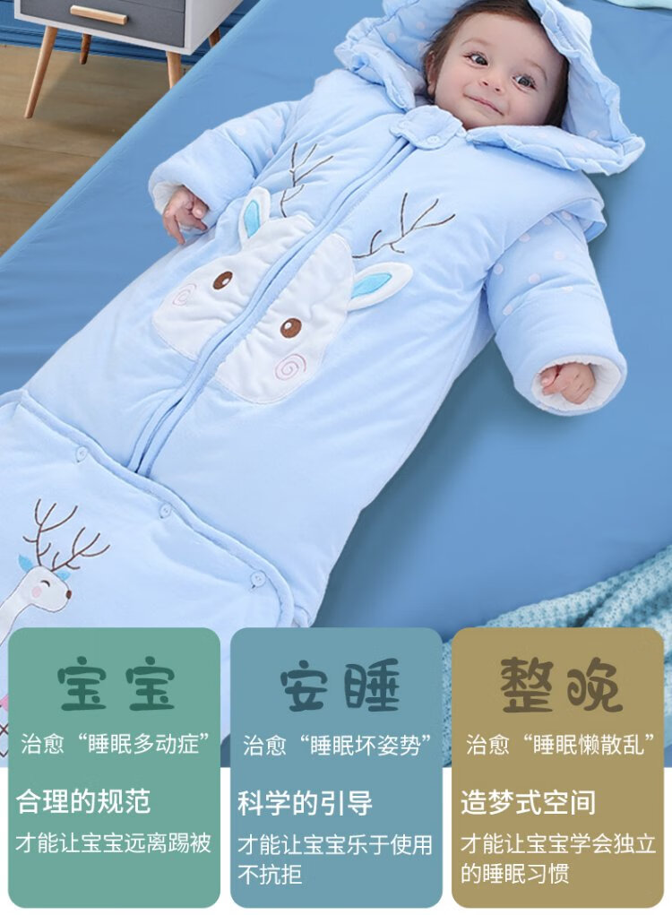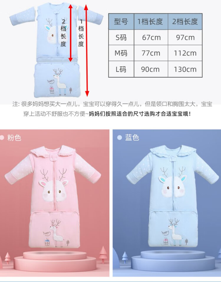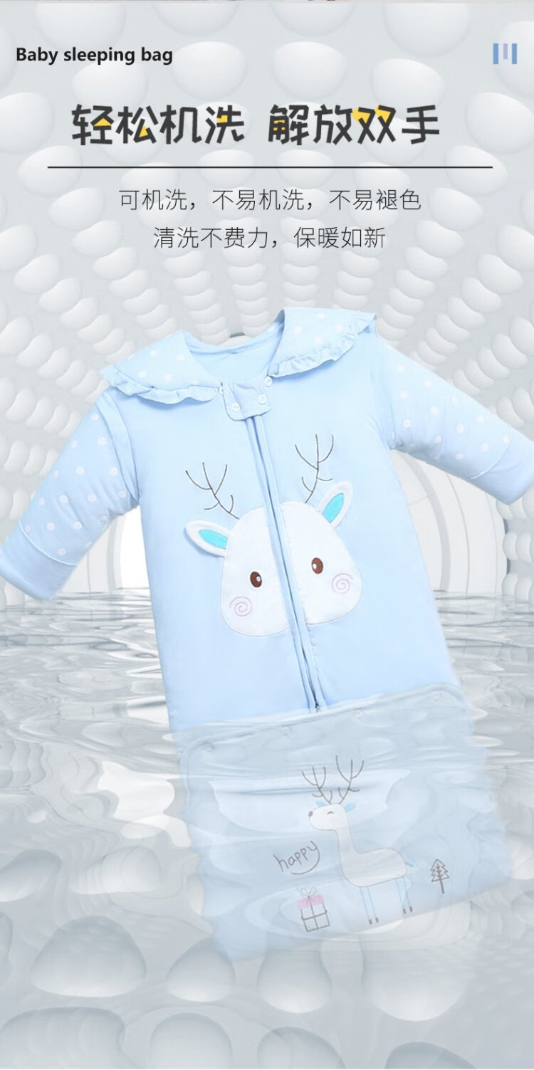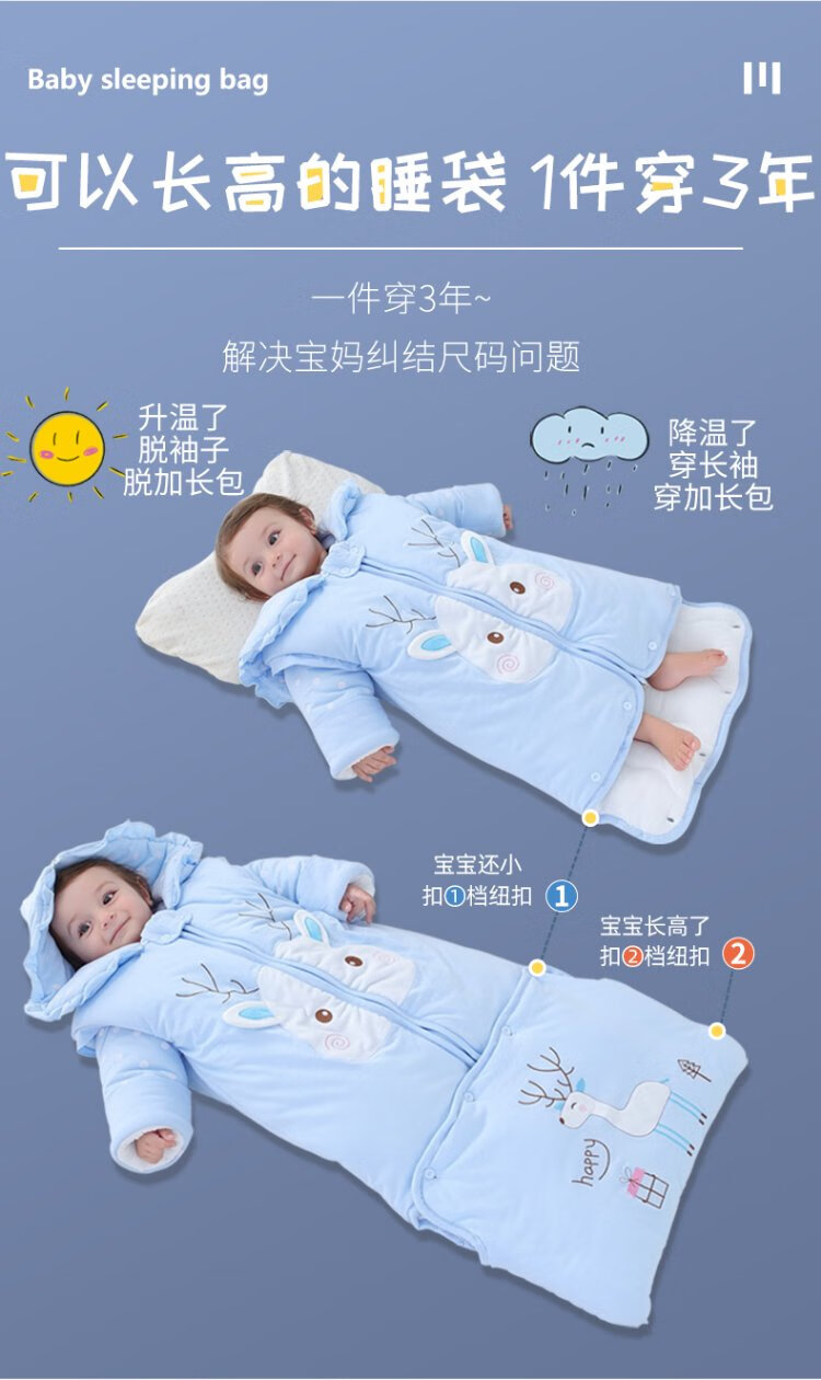 Baby-faced baby sleeping bag, large children's anti-kicking quilt, baby's removable sleeves, extended bag, newborn autumn and winter thickened quilt