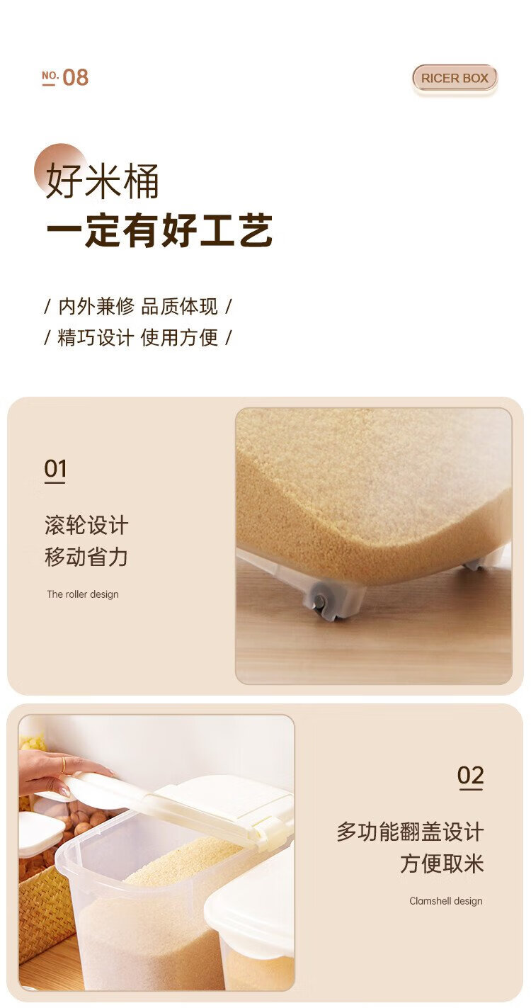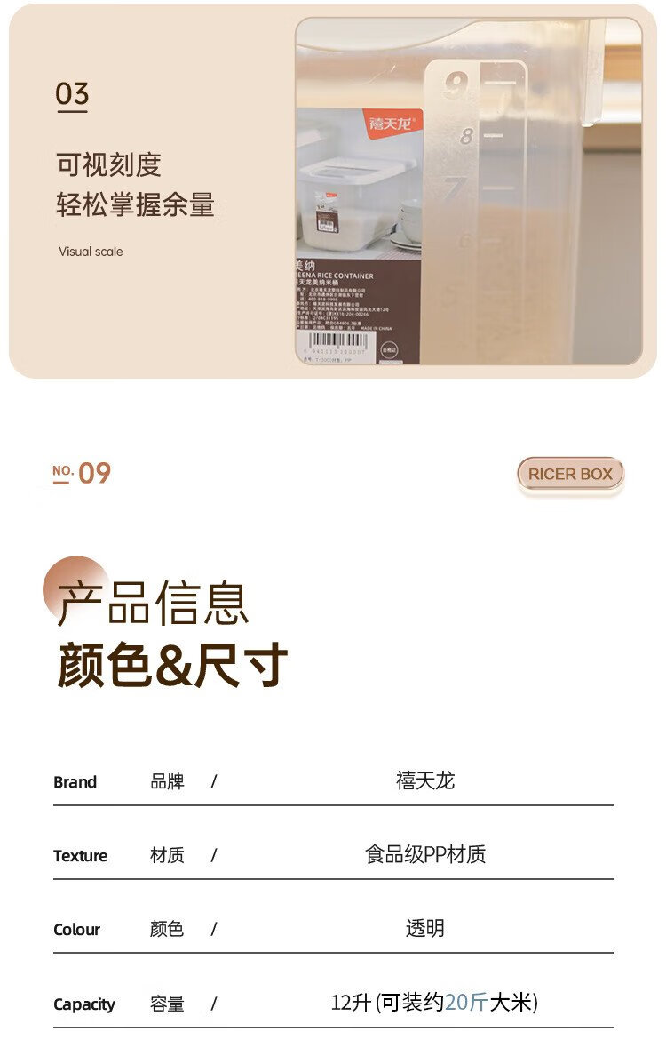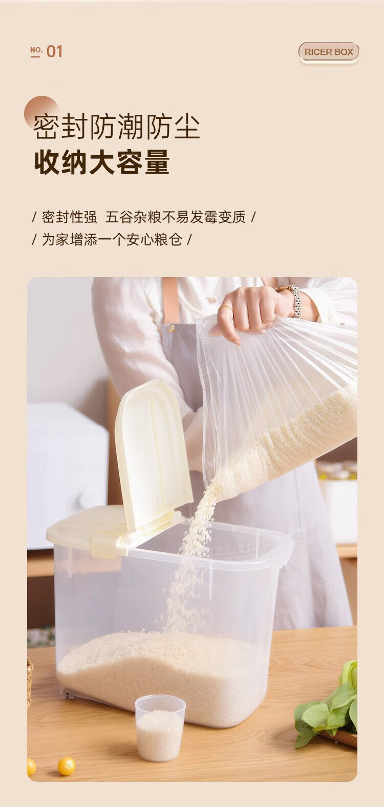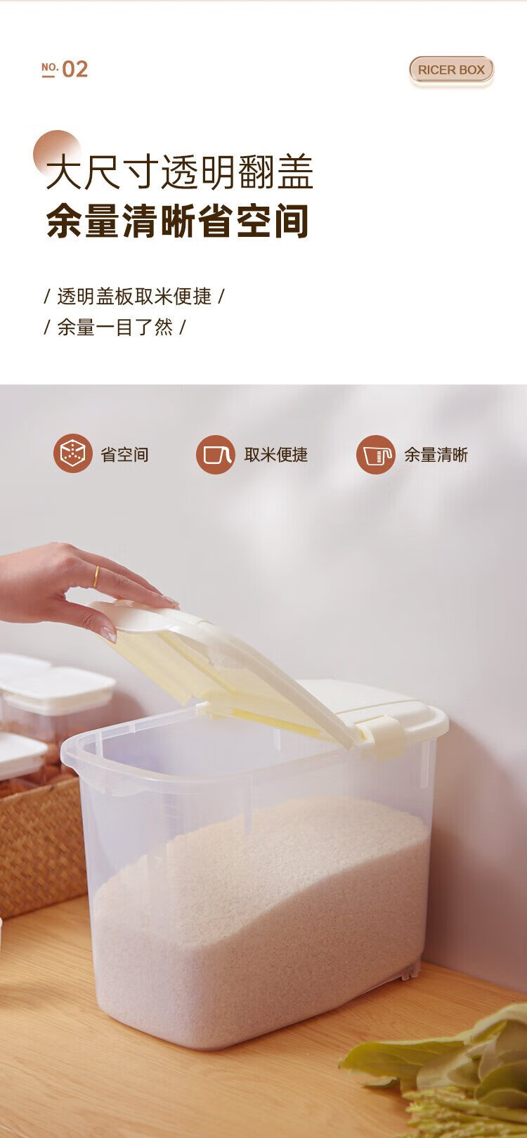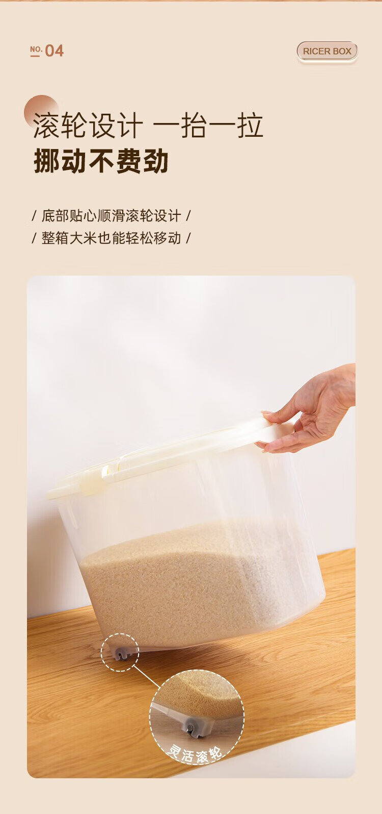 Xitianlong rice bucket rice cylinder household sealed rice flour moisture-proof and insect-proof kitchen storage box with pulley 20 Jin Jin equal to 0.5 kg rice large capacity
