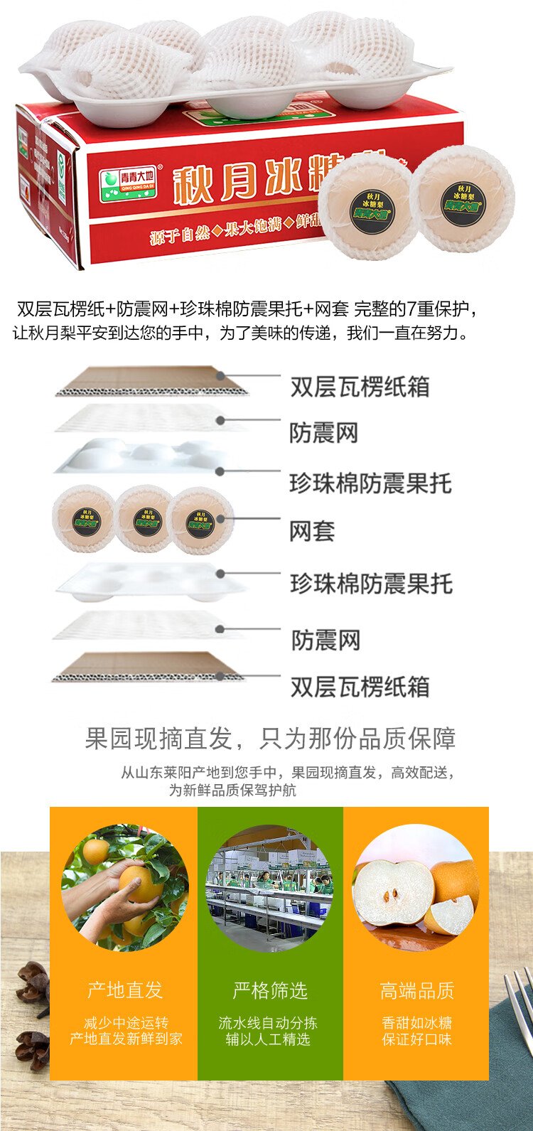 Jingxiansheng Qingqing Dadi Laiyang Mutton Fat Qiuyue Pear, net weight 4.5 Jin Jin equals 0.5 kg, 6-8 pieces, fresh fruit, gift box