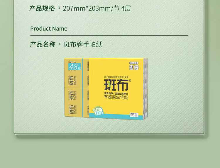 Banbu handkerchief paper 4 layers, 8 pieces * 48 packs, absorbent and wipeable, not easy to break, paper towels, facial tissues, small packs of paper