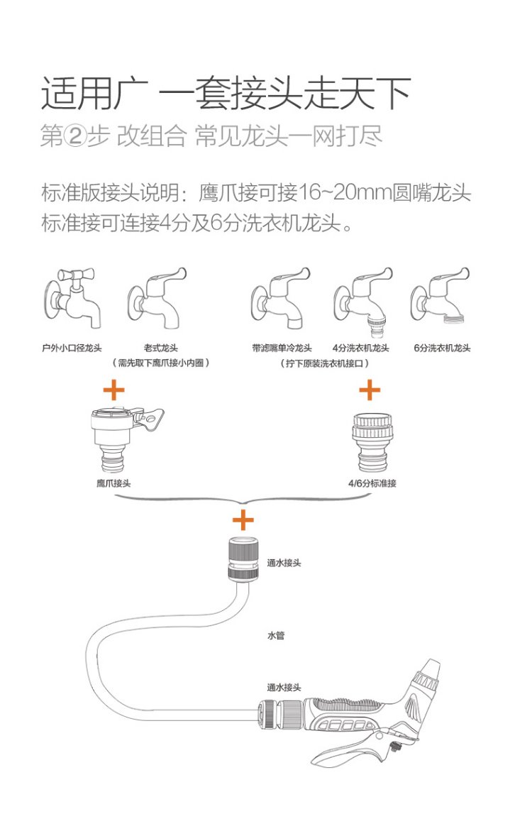 Orichi household high-pressure car washing water gun watering flower hose set tool car brushing tool water gun + connector + 10 meters pipe