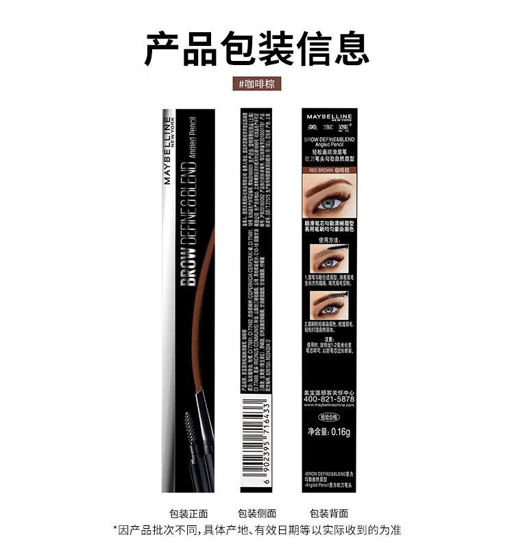Maybelline Easy Smooth Eyebrow Pencil Waterproof and Sweatproof Coffee Brown Suitable for Coffee Hair Color 0.16g Birthday Gift for Women
