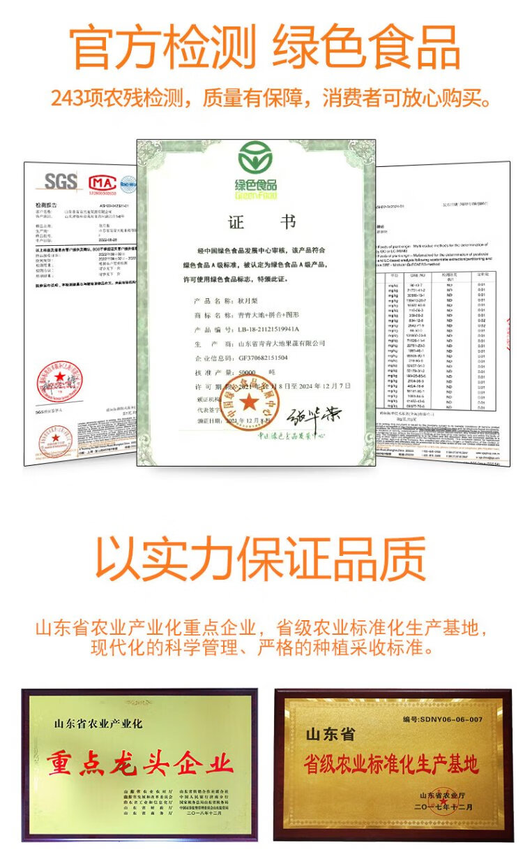 Beijing fresh green earth Laiyang old tree Qiuyue pear 6Jin Jin is equal to 0.5kg 6 pieces high-quality large fruit fruit gift box