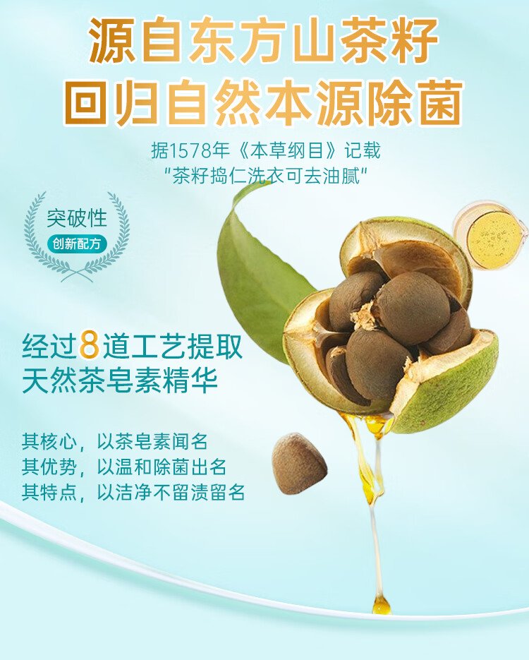 Liby Natural Tea Seed Laundry Detergent 12 Jin Jin is equal to 0.5 kg, sterilizing, mite and bacteriostatic, hand washing, machine washing, odor removal and stain removal with refill