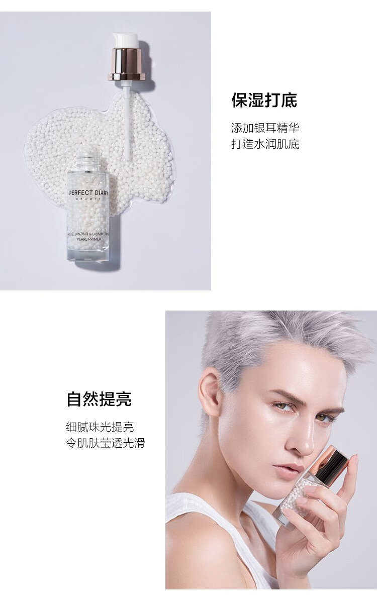 Perfect Diary Glowing Pearl Makeup Primer 30ml Isolates invisible pores and brightens skin tone before makeup