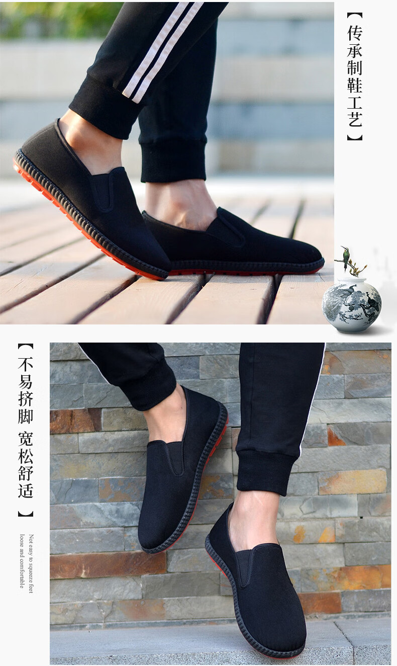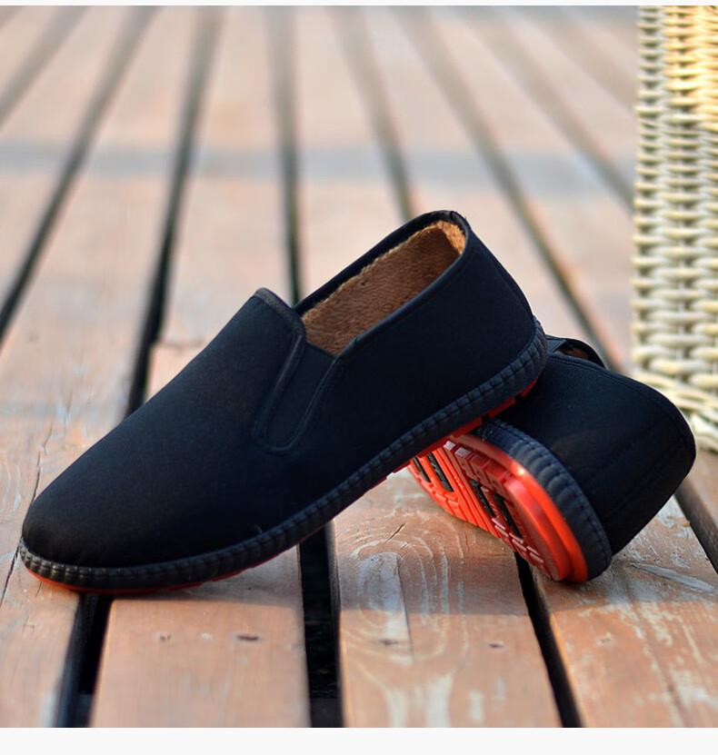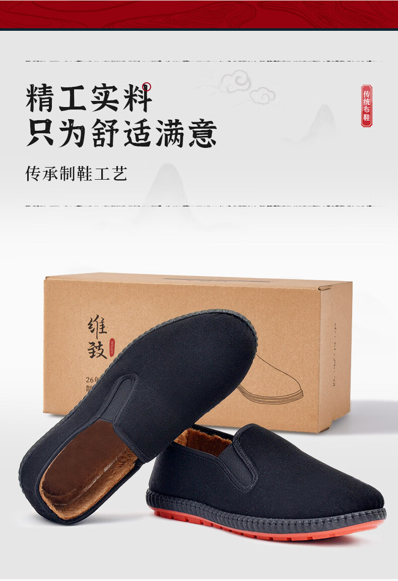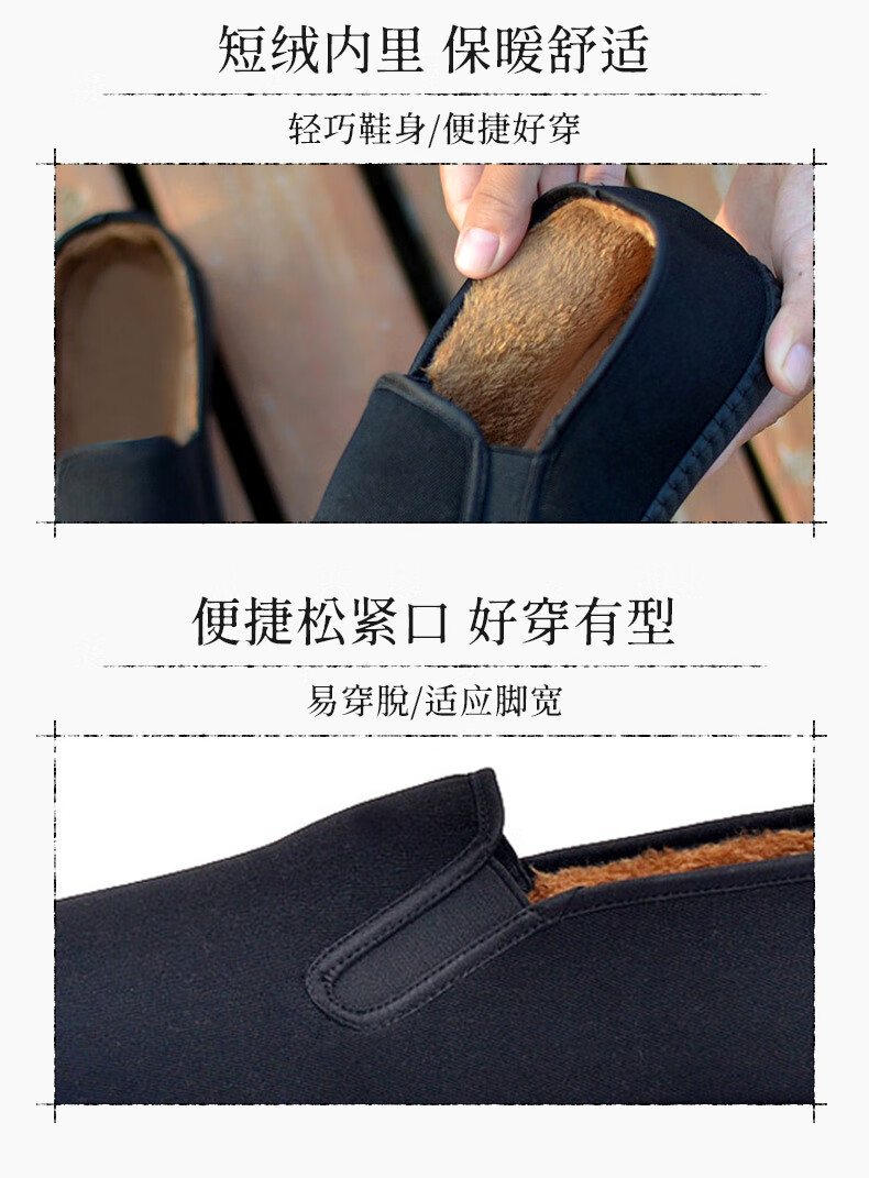 Weizhi traditional old Beijing cloth shoes men's winter velvet lazy slip-ons WZ1016 black 42