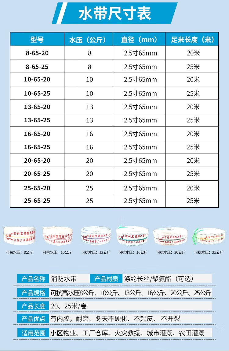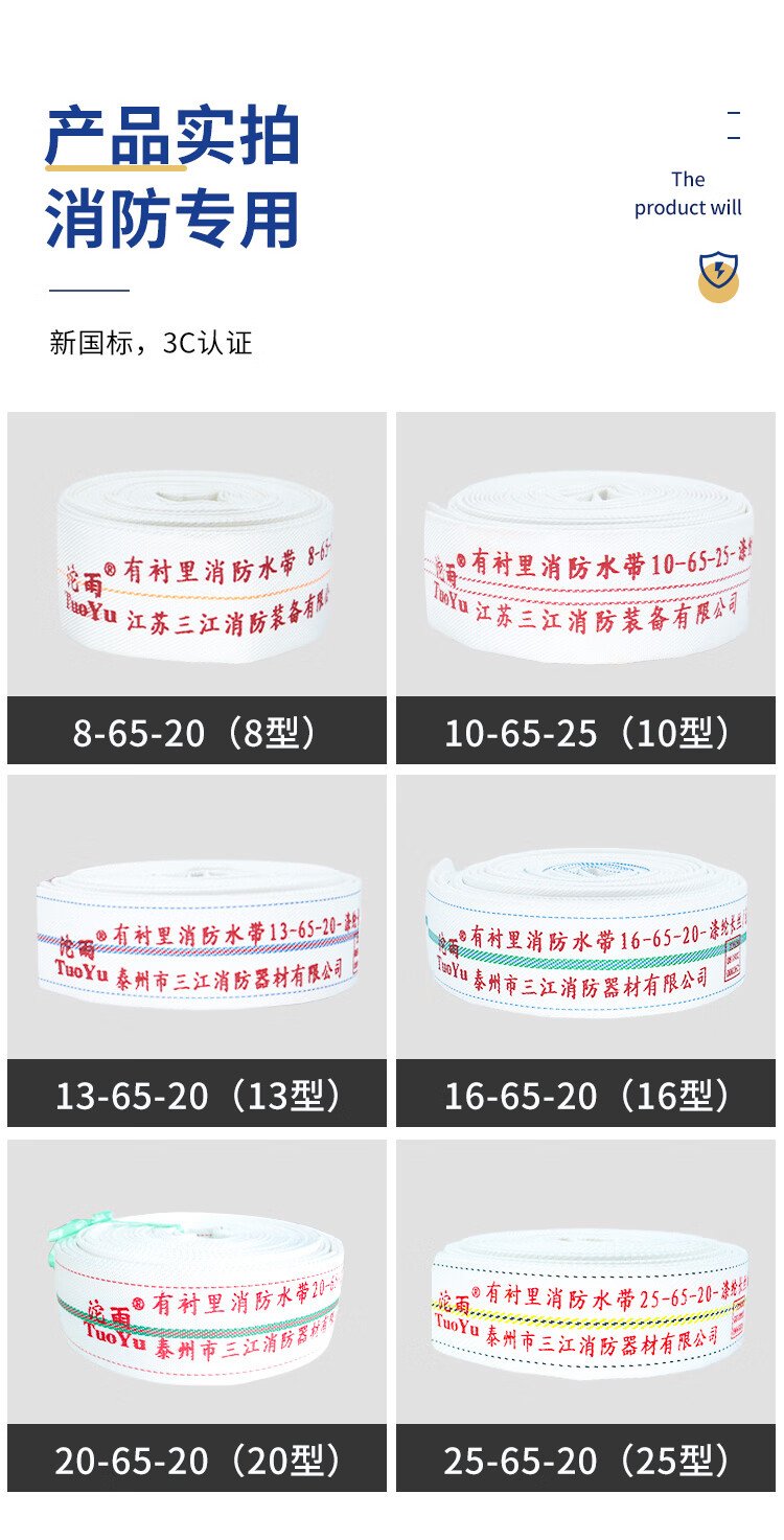 Tuoyu (TUOYU) fire hose Sanjiang Fire Protection 13-65-20 high pressure and wear-resistant synthetic rubber hose 13 type 65mm (2.5 inches) 20 meters hose + connector 1 piece