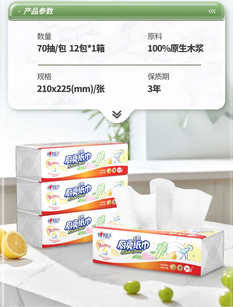 Xinxiangyin kitchen paper 70 sheets 12 packs food grade oil and water absorbent paper lazy rag disposable paper towels whole box