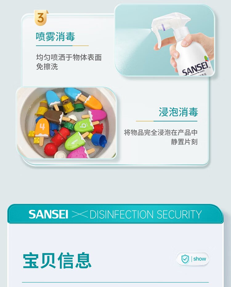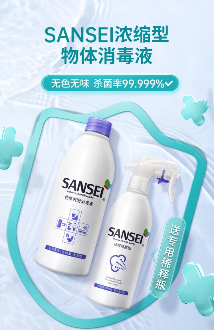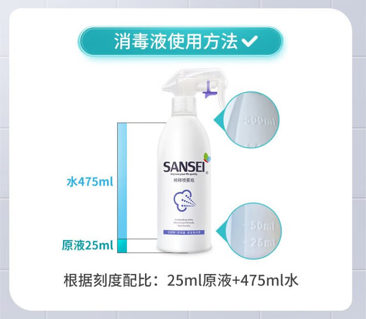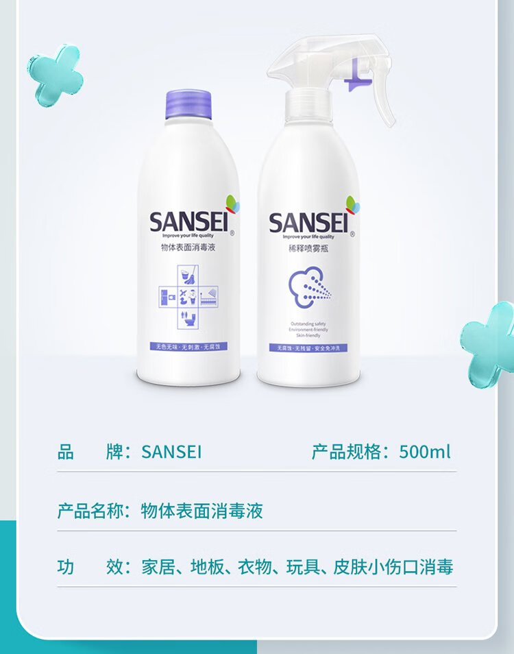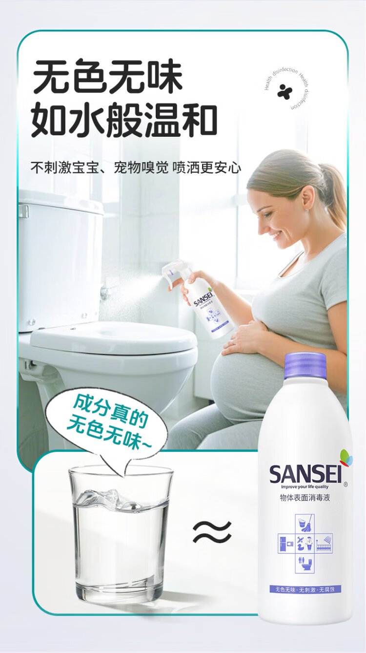 Sansei three-organism surface disinfectant spray 500ml toy toilet express disinfectant water for pregnant and infant use odorless