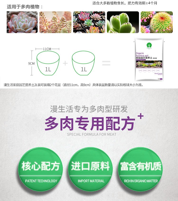 Manlife imported raw materials succulent nutrient soil 2L/bag (20% granules) gardening planting soil seedling flower pot matrix soil