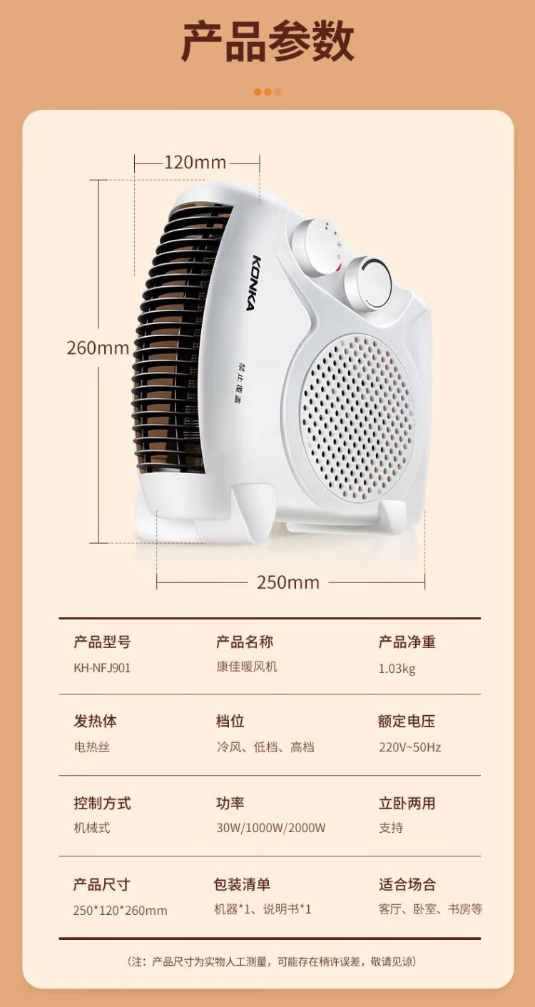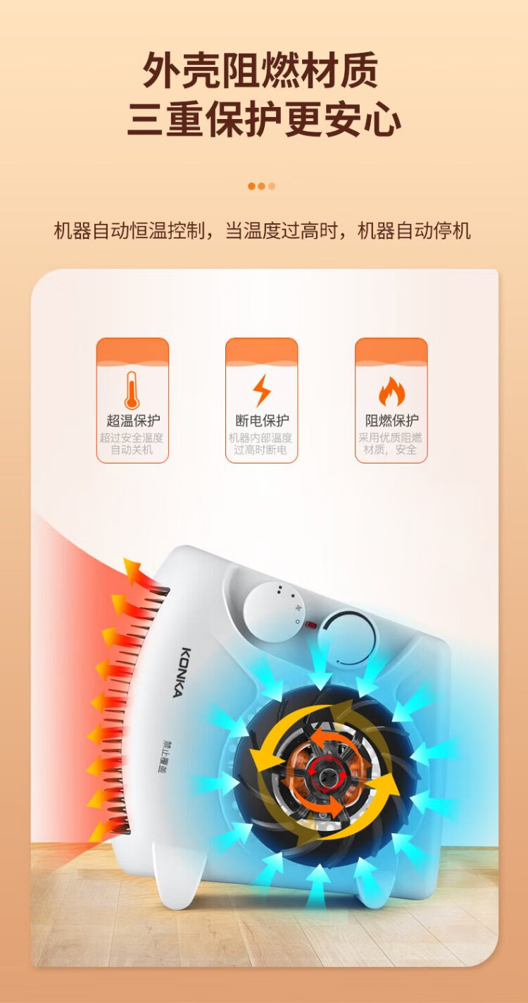 KONKA heater household small electric heater electric heater standing and sleeping stove heating automatic temperature control energy-saving fast heating electric heater KH-NFJ901