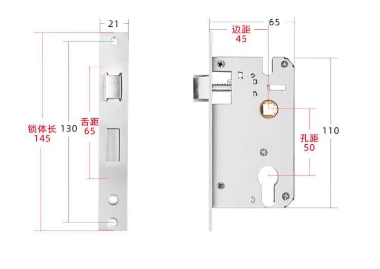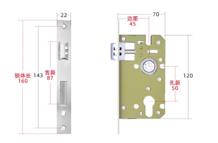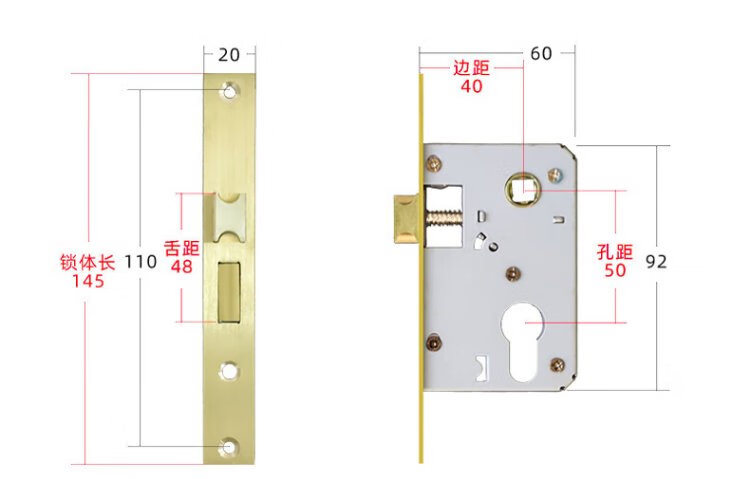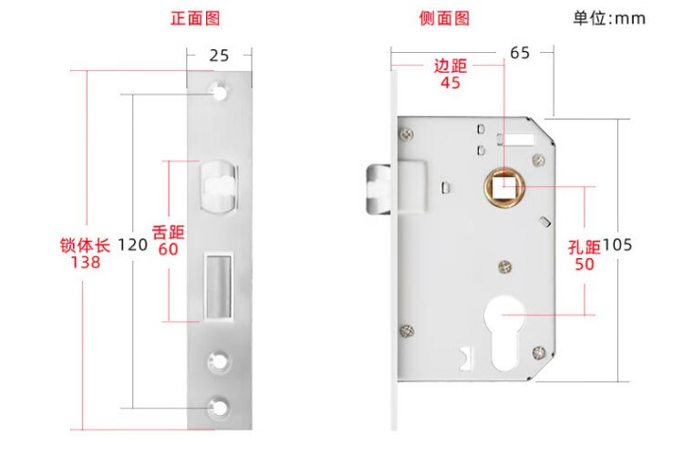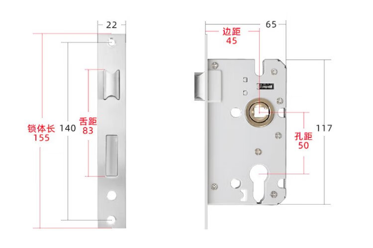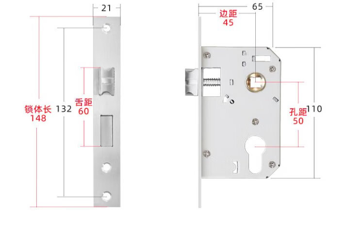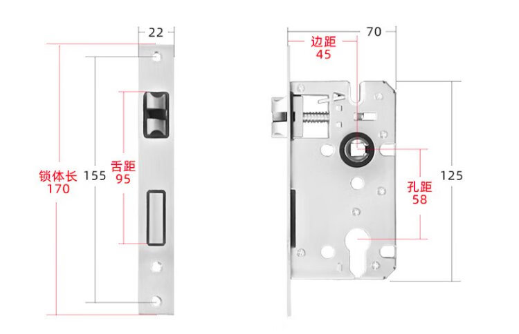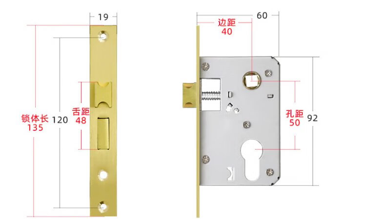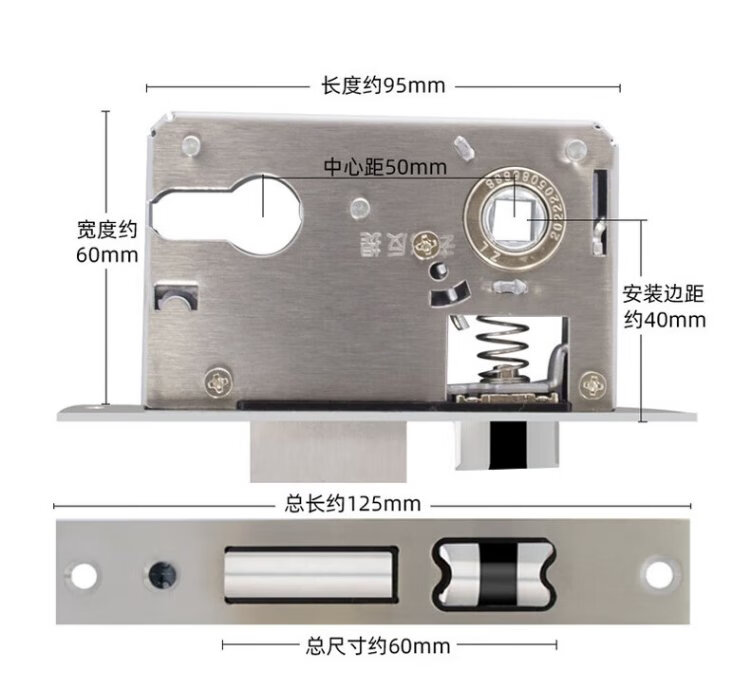 Hudun lock body indoor bedroom deadbolt door lock universal large 50 wooden door door lock room light sound lock body 160 light