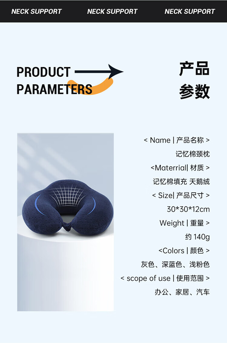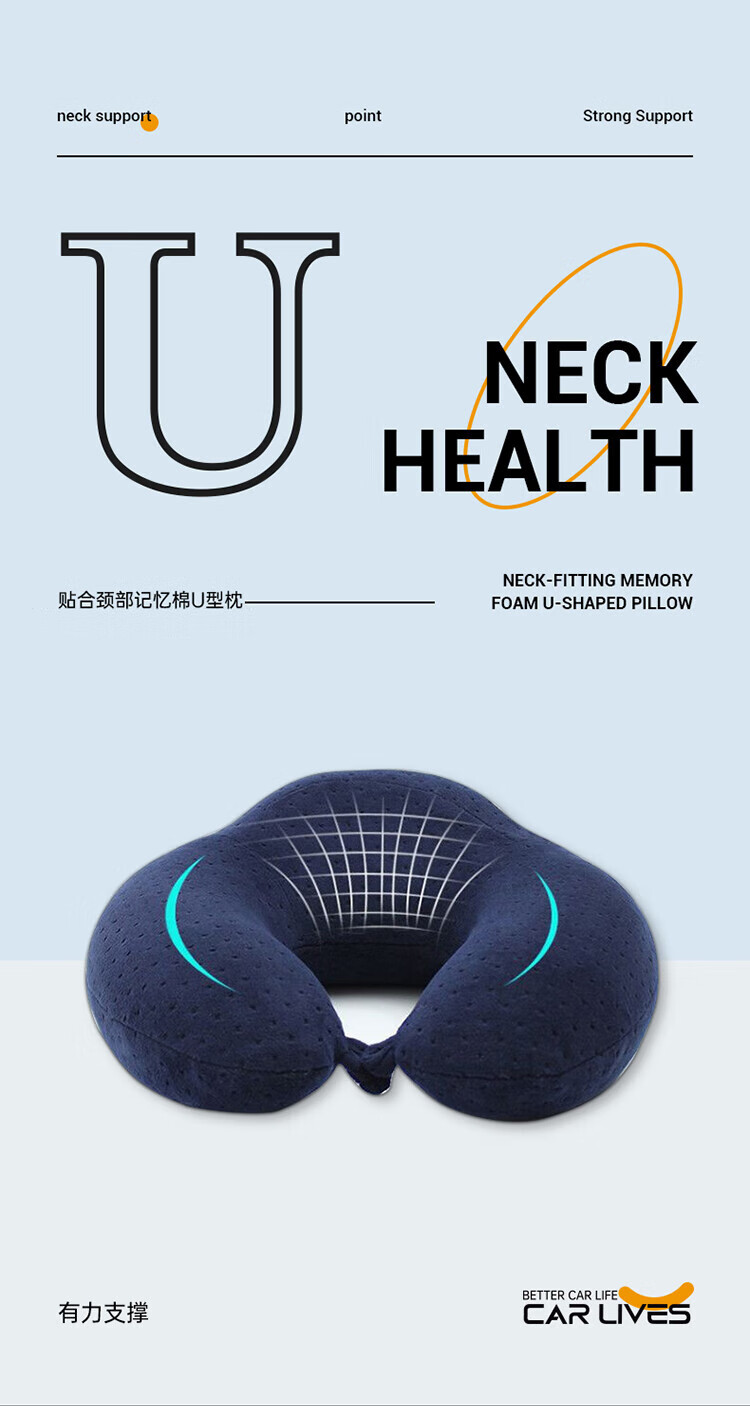 Kalai decorated u-shaped pillow car neck pillow nap pillow memory foam neck u-shaped pillow travel headrest office pillow blue