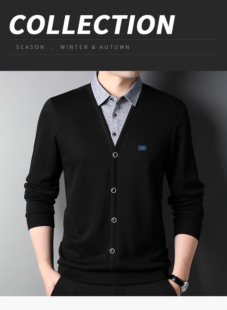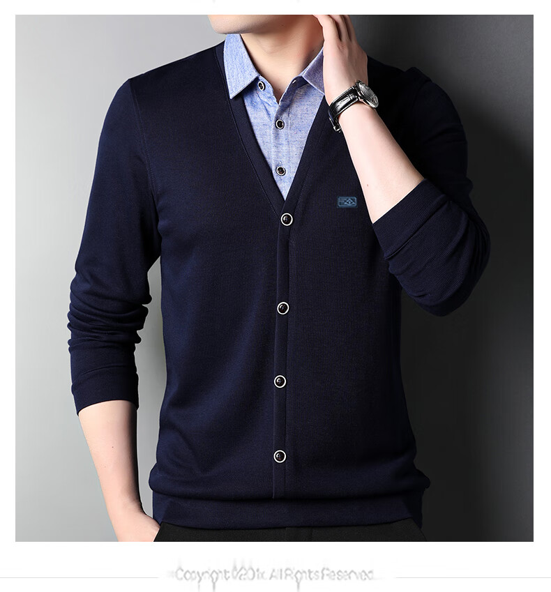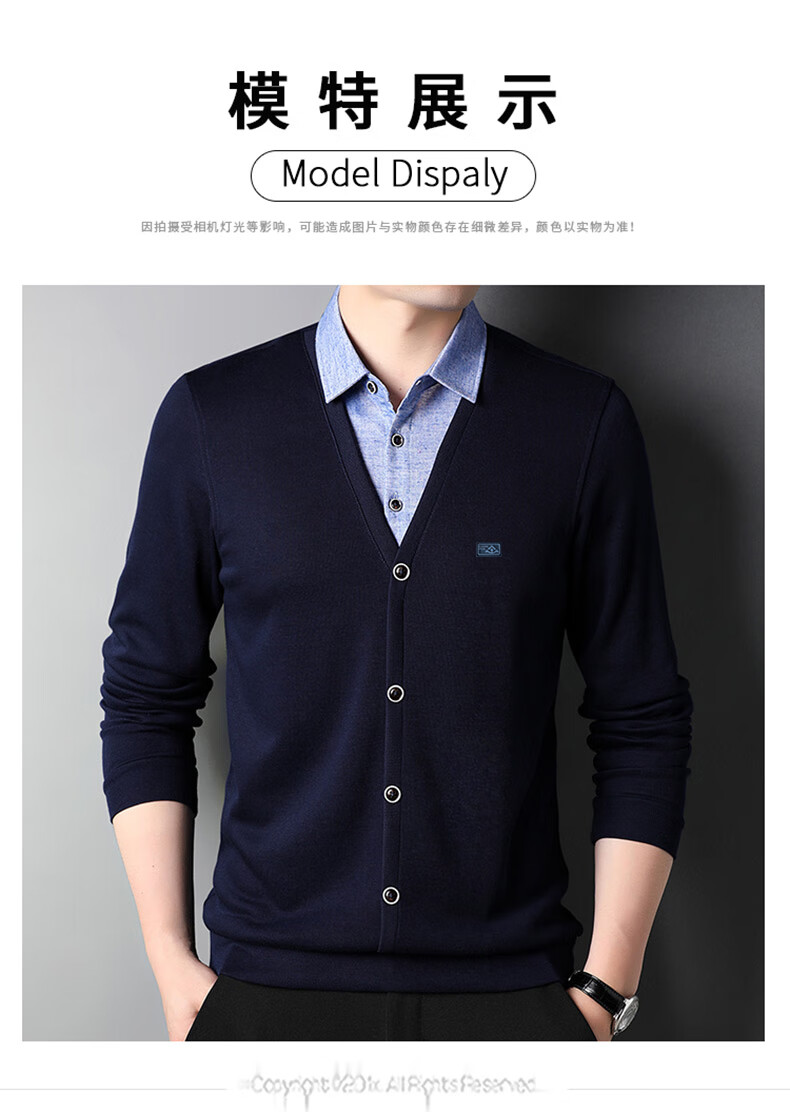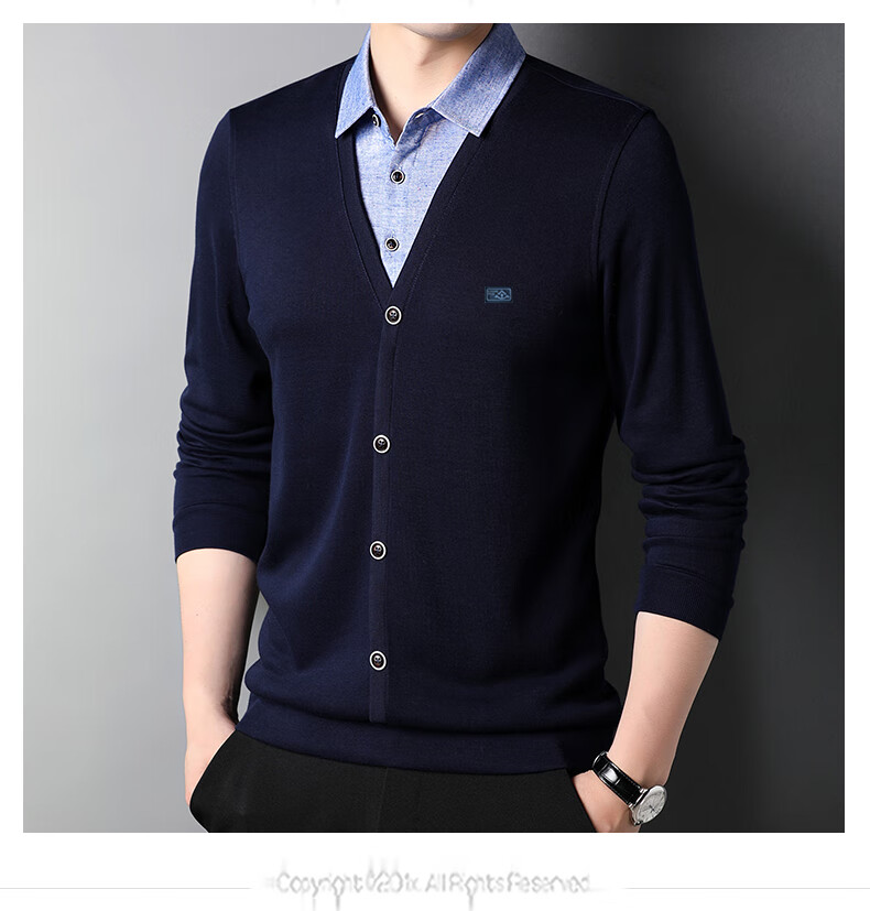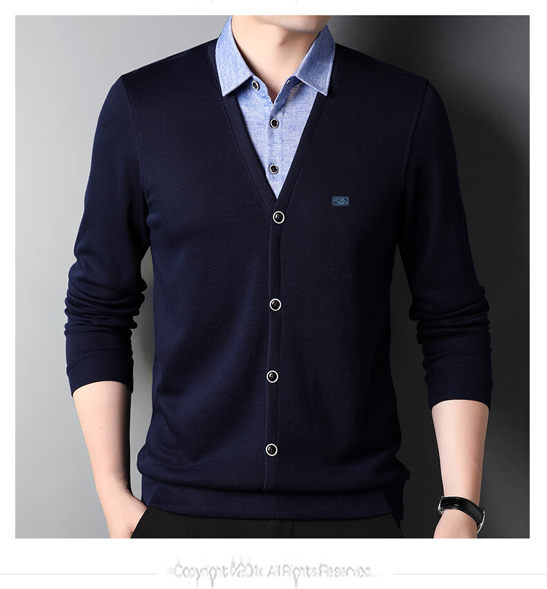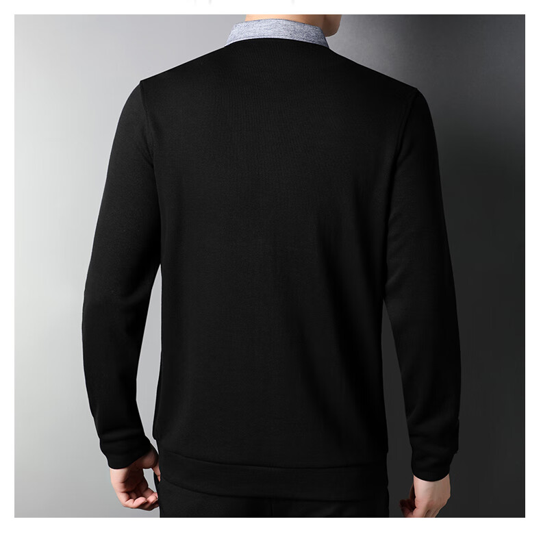 Hengyuanxiang sweater young men's casual fake two-piece versatile sweater top HJ164 Navy 175/92A