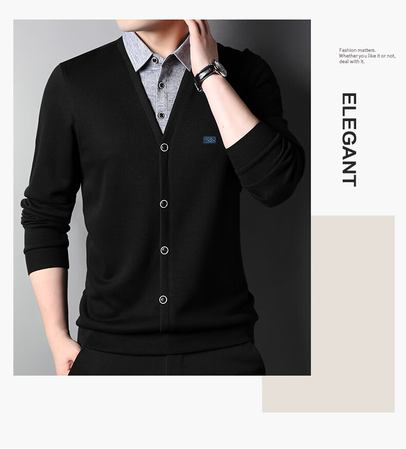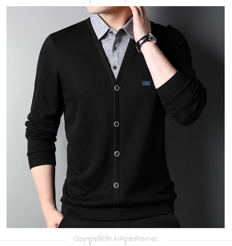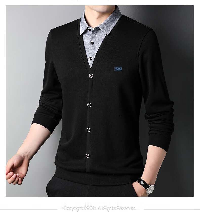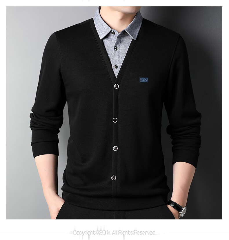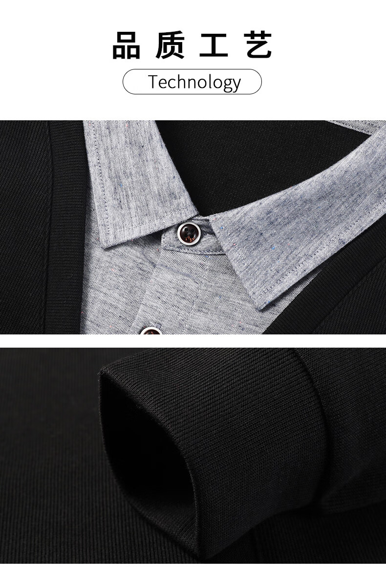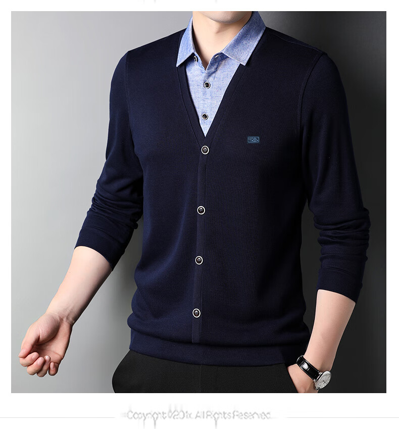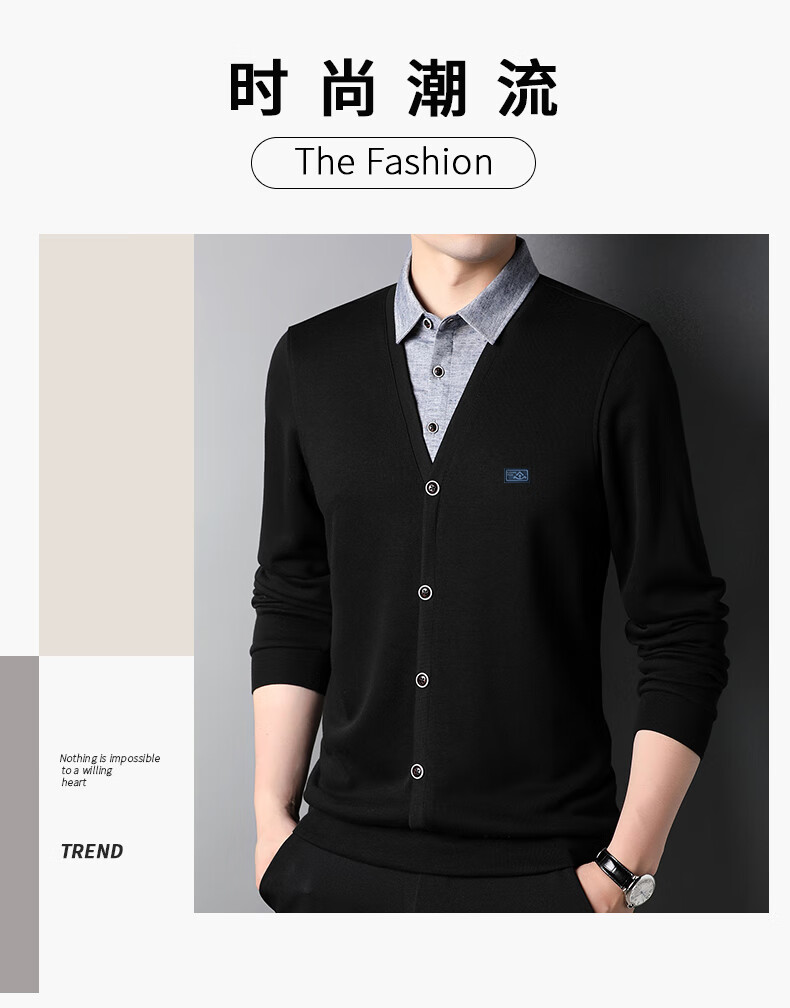 Hengyuanxiang sweater young men's casual fake two-piece versatile sweater top HJ164 Navy 175/92A