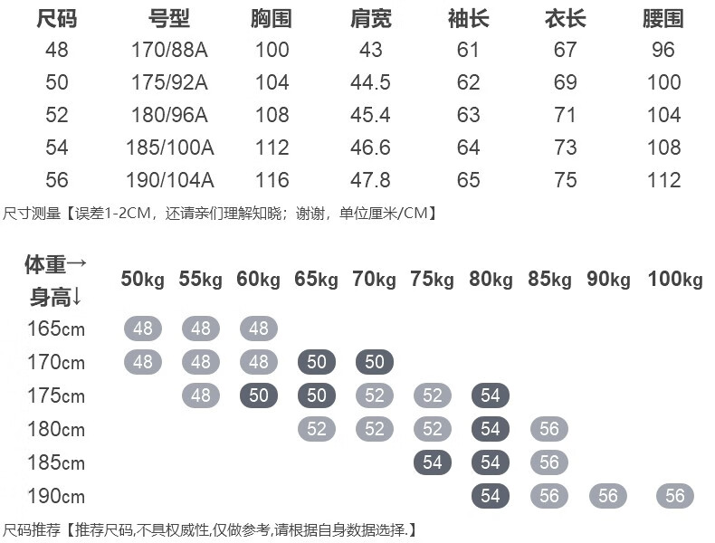 China (cm) 160-165/84-86 165-170 / 88-90 167-172 / 92-96 168-173 / 98-102 170-176 / 106-110