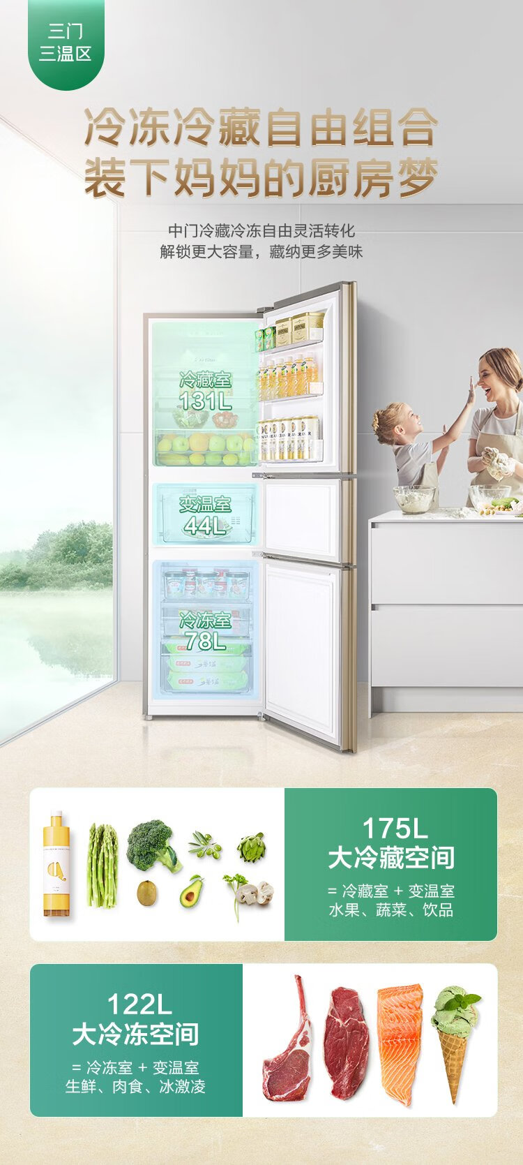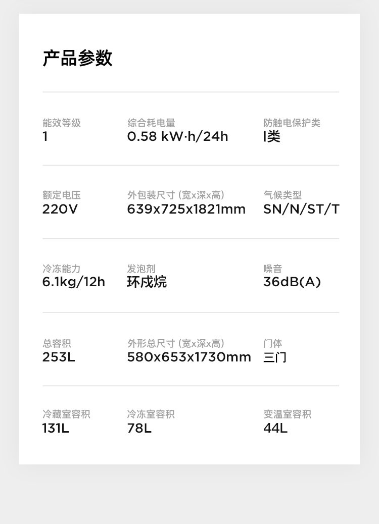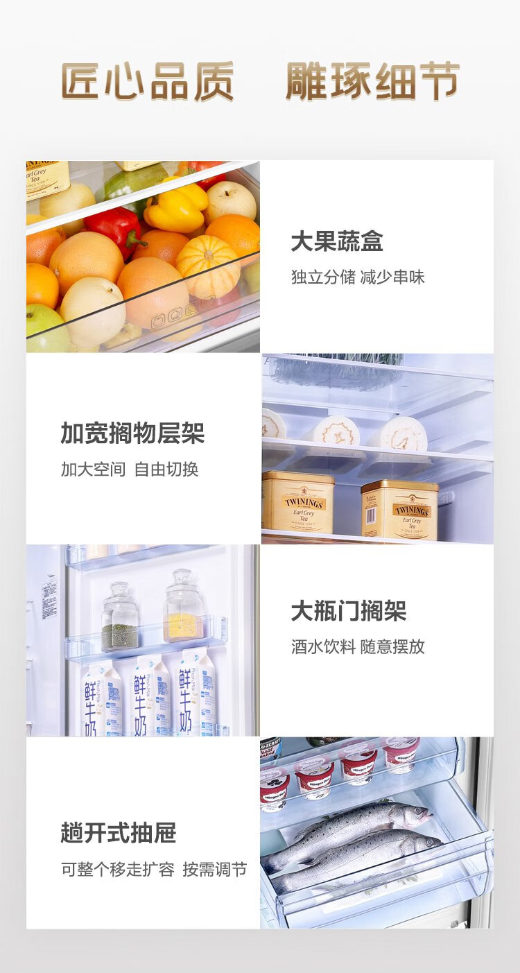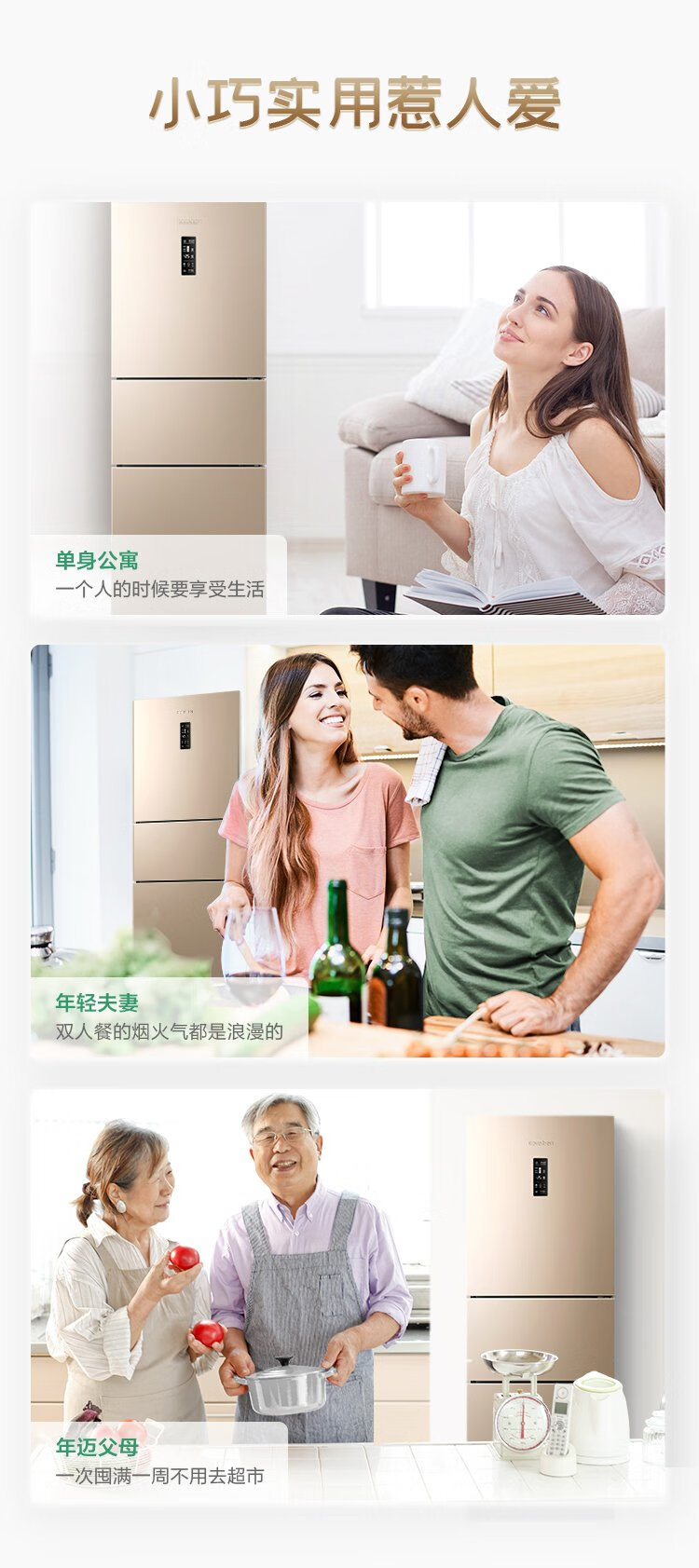 Rongsheng 253 upgraded first-class energy efficiency three-door small refrigerator household small air-cooled frost-free energy-saving rental dormitory BCD-253WD16NPA brilliant gold home appliances national subsidy