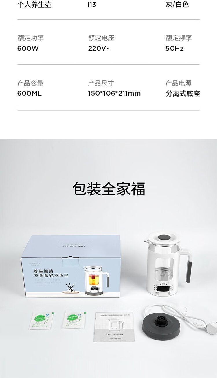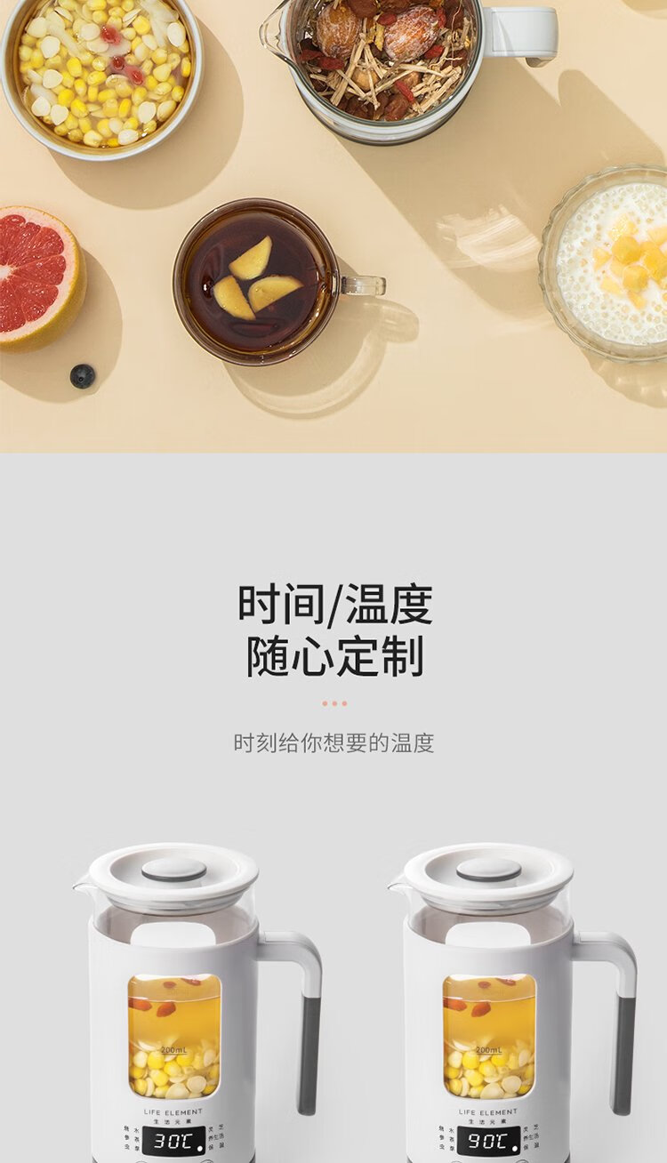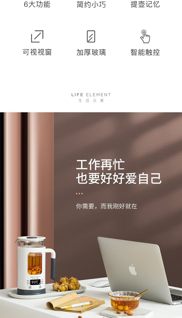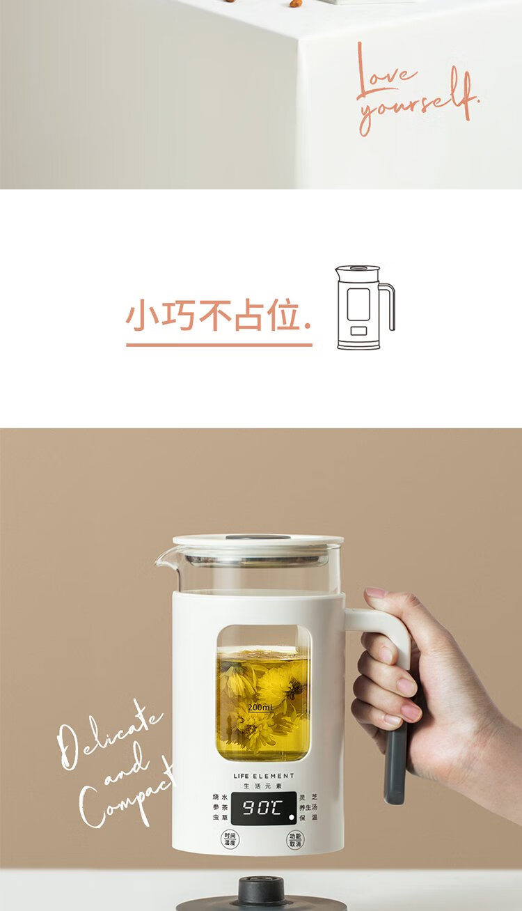 LIFE ELEMENT mini health pot, exclusive for the office, small capacity 0.6 liters, integrated thermal insulation, intelligent fully automatic constant temperature, scented tea essence brewing pot I13