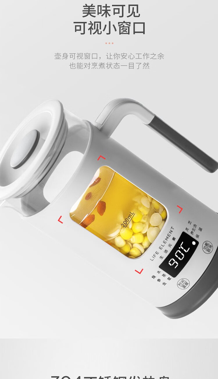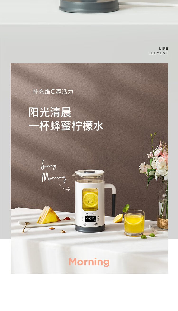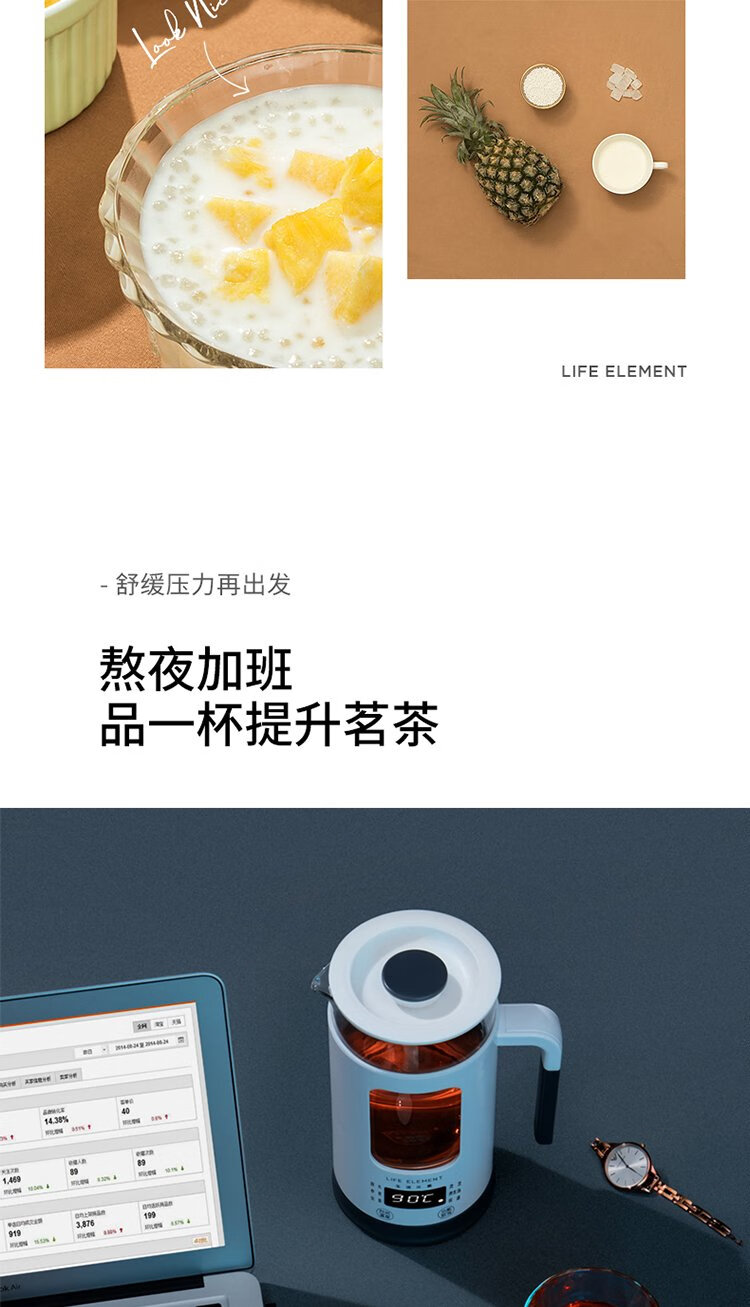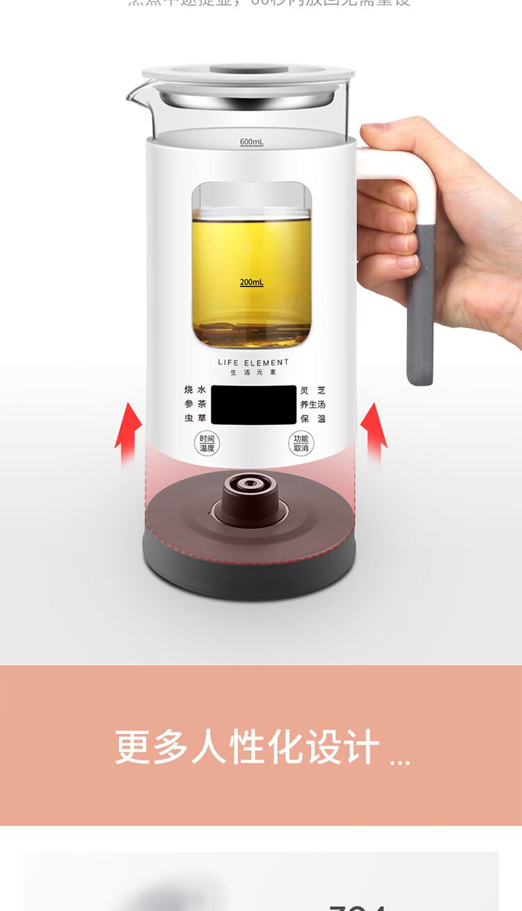 LIFE ELEMENT mini health pot, exclusive for the office, small capacity 0.6 liters, integrated thermal insulation, intelligent fully automatic constant temperature, scented tea essence brewing pot I13