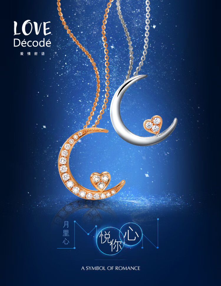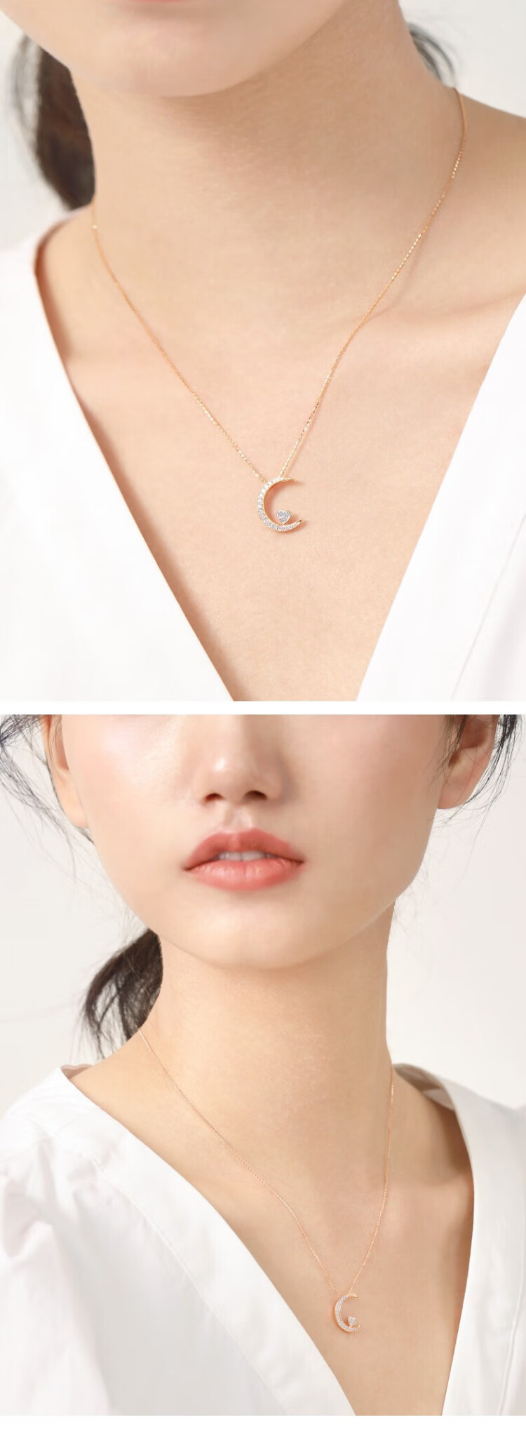 Chow Sang Sang 18K gold love secrets to please your heart moon diamond necklace 89829U price 47 cm