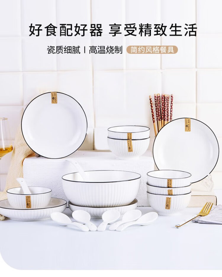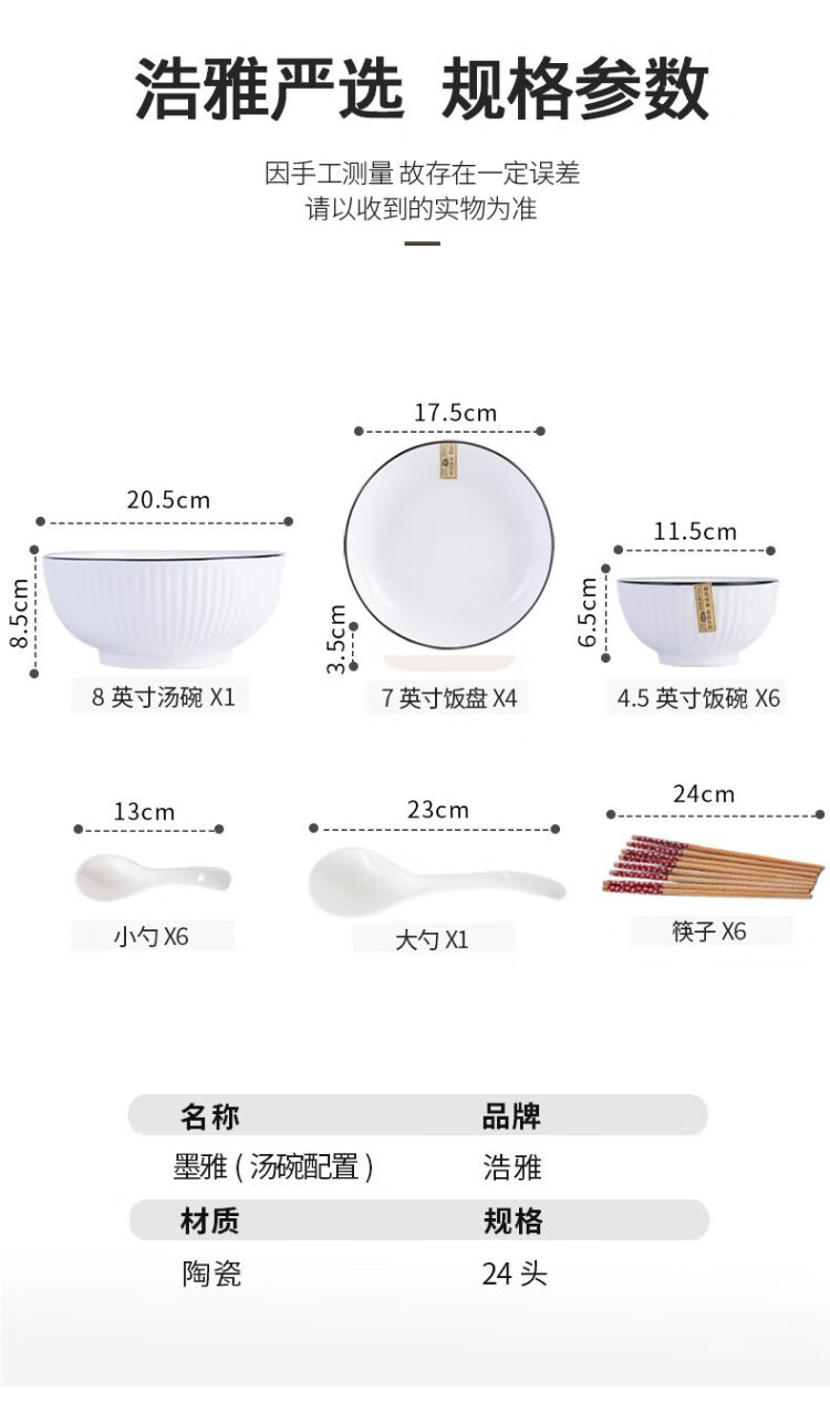 Haoya underglaze color Jingdezhen home bowl and dish set ceramic tableware bowl, plate, chopsticks and spoon combination Yamada vertical pattern 24 heads