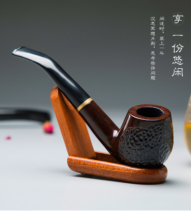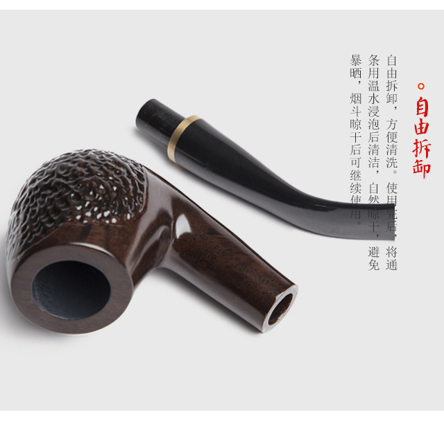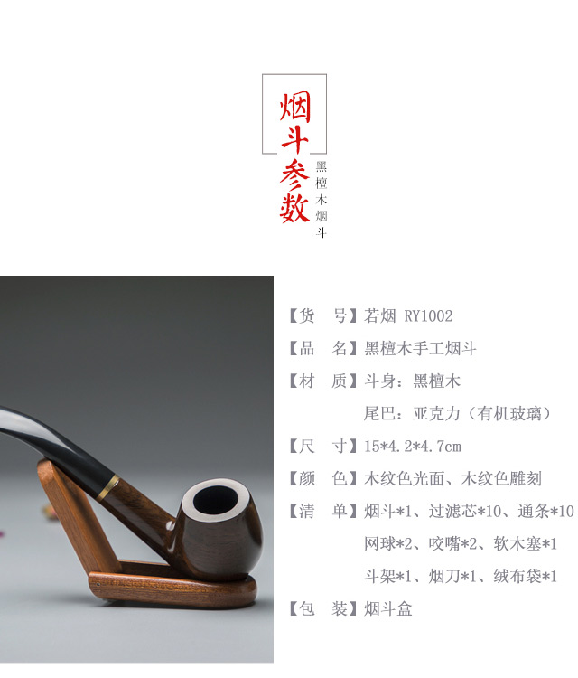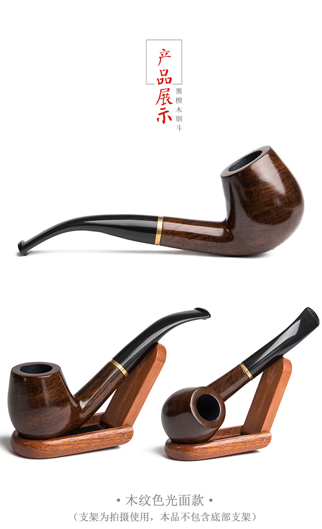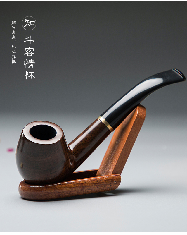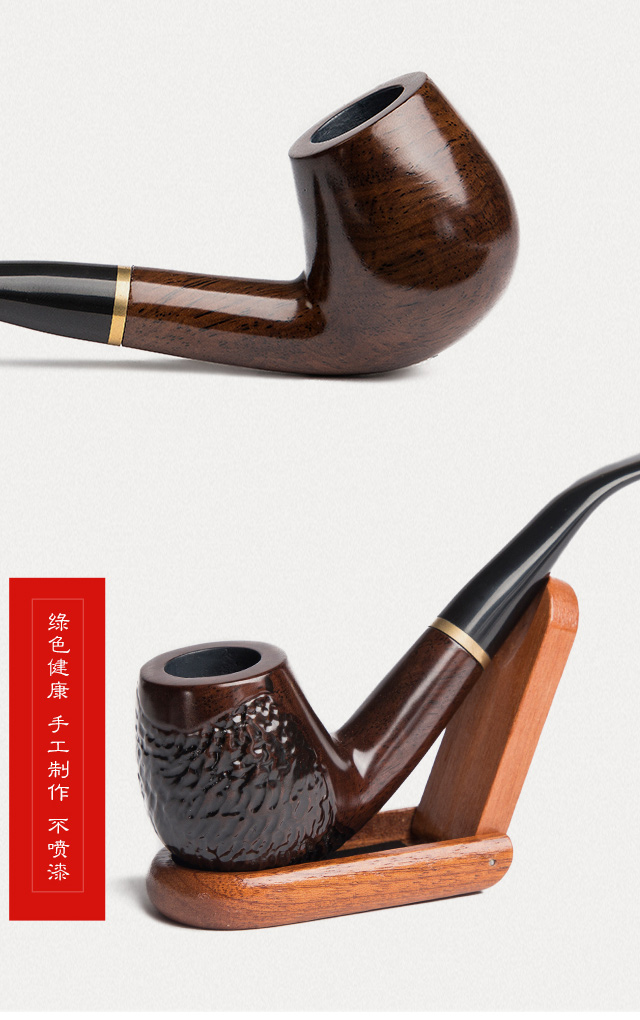Ruoyan handmade solid wood pipe men's cigarette bag pot curved bucket ebony dry tobacco rod filter cigarette holder father elders gift