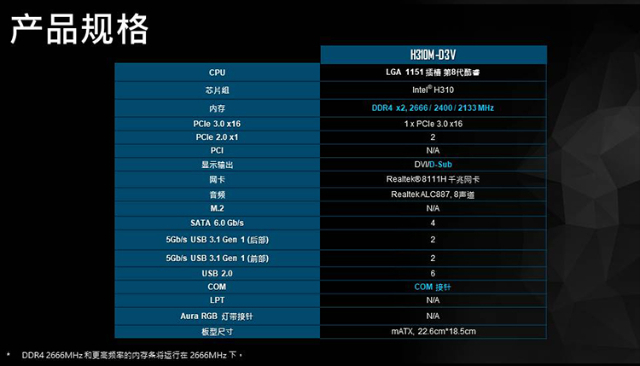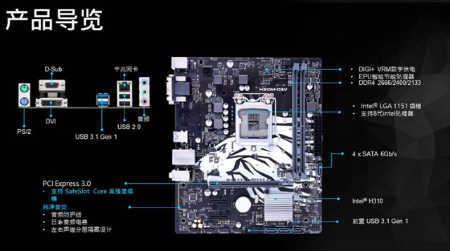Shengqi H310M-D3V (Intel H310/LGA 1151) motherboard, a motherboard brand owned by ASUS, supports Intel CPU 9400F/9100F/8100/G5420