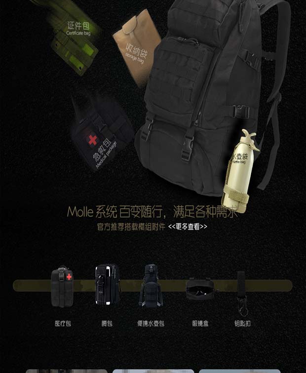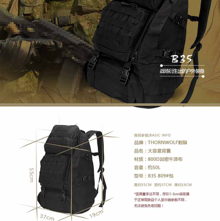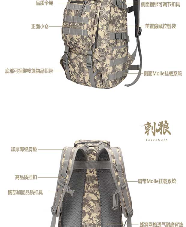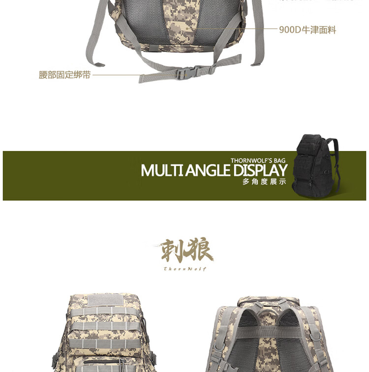Thornwolf outdoor backpack large capacity MOLLE system tactical mountaineering bag military fans hiking travel 50L backpack CLDS1901ACU camouflage
