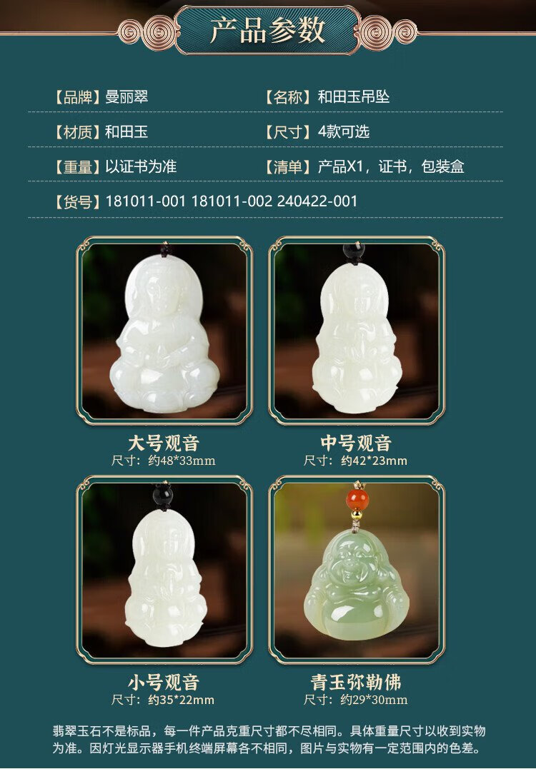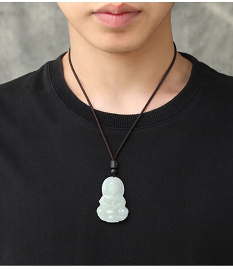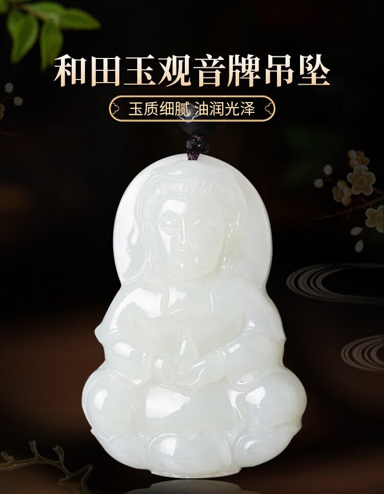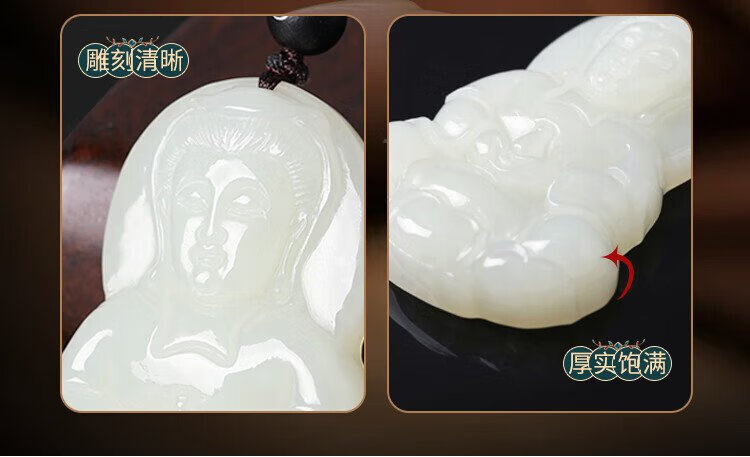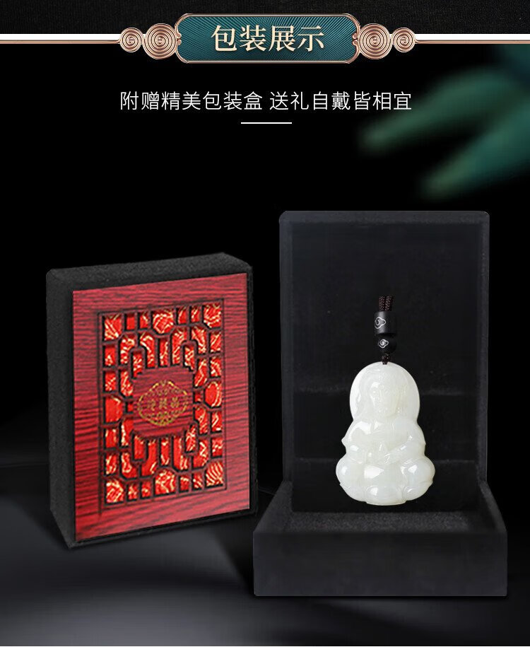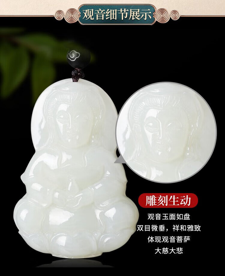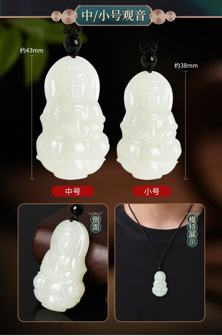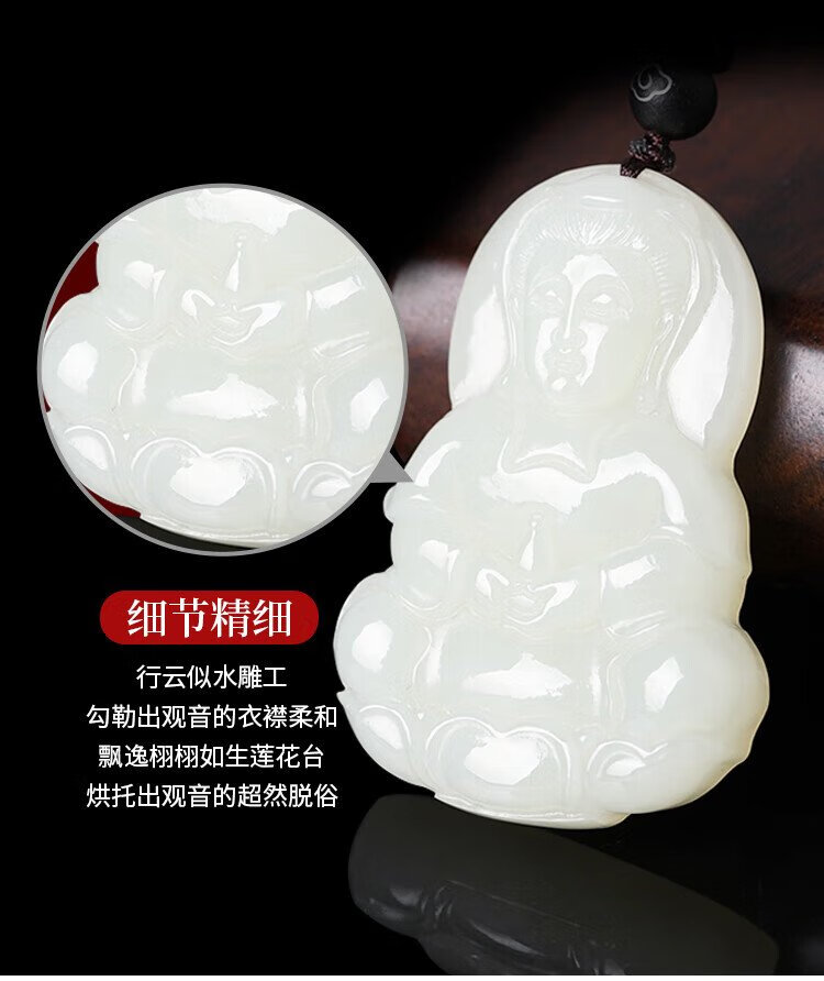 Manli Cui Hotan White Jade Guanyin Pendant Peace Bodhisattva Jade Pendant Necklace Gift Certificate for Boyfriend