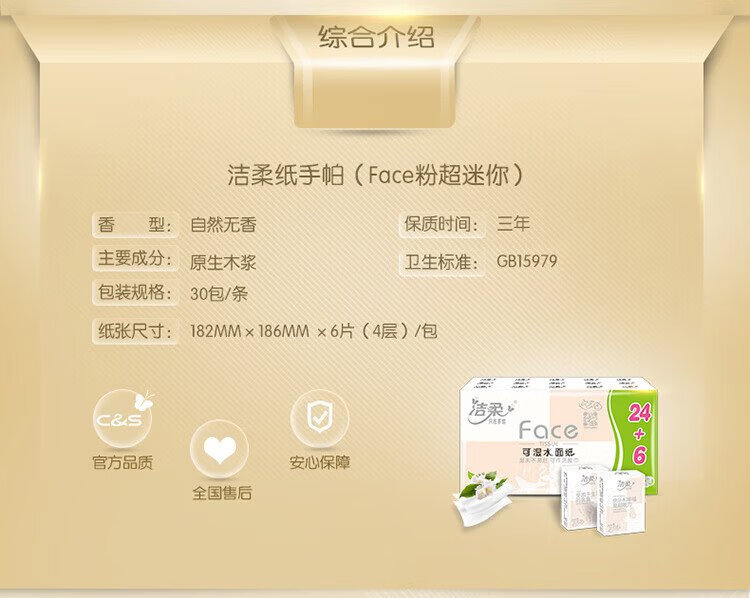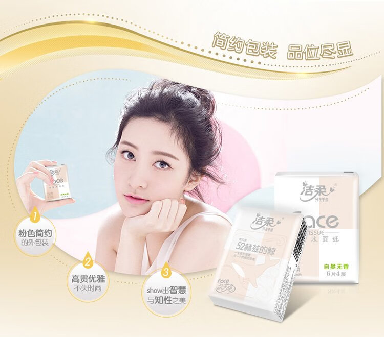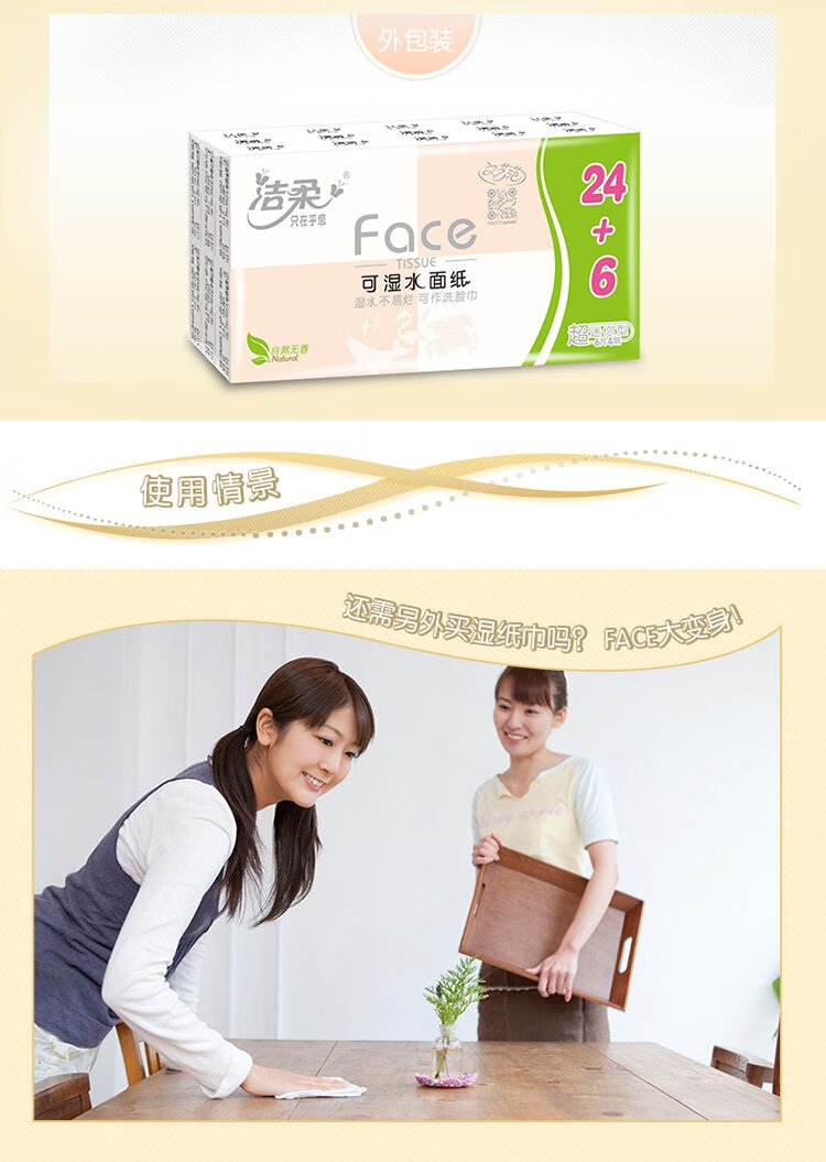 Jierou handkerchief paper, pink face 4 layers, 6 pieces * 30 packs of paper towels, ultra-mini and portable, wettable German craftsmanship