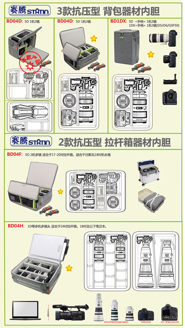 Statin BD04C (small) SLR camera bag, camera liner bag, pressure-resistant and convenient double-opening structure, hard camera liner bag