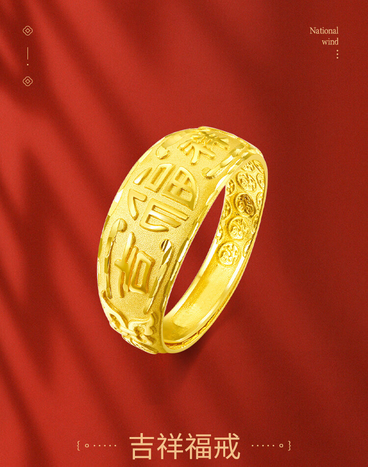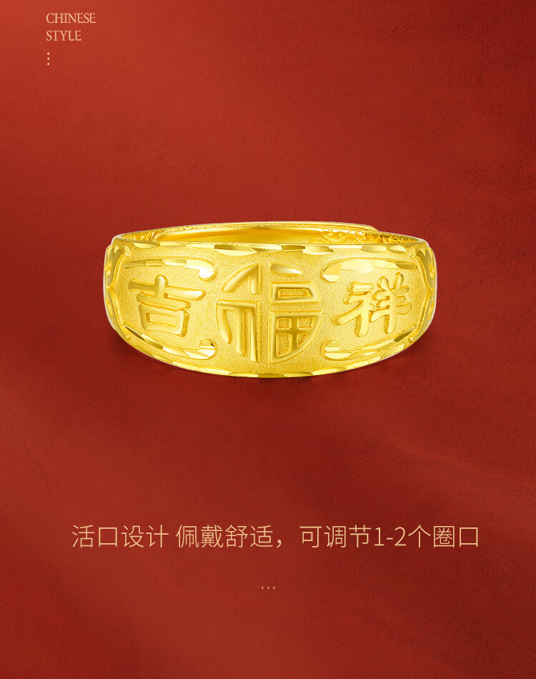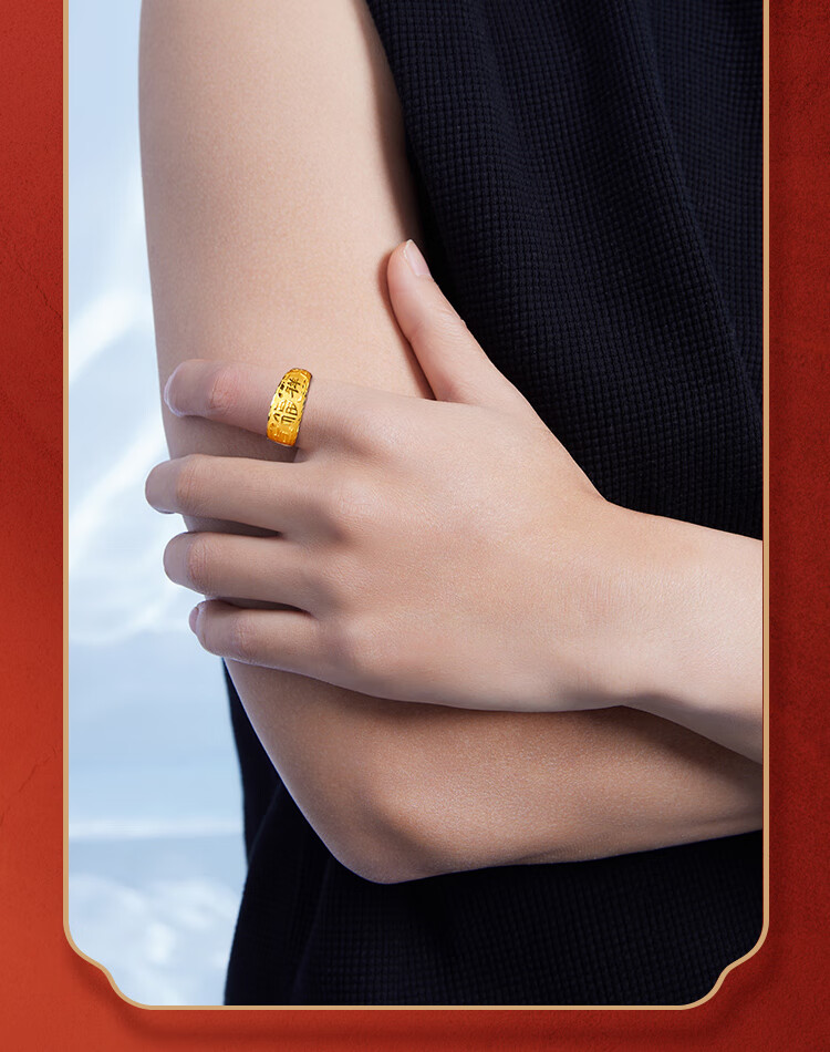 Saturday Blessing Pure Gold 999 Auspicious Blessing Gold Ring Male AA010839 Living Mouth No. 17 Approximately 5.2g Birthday Gift Price