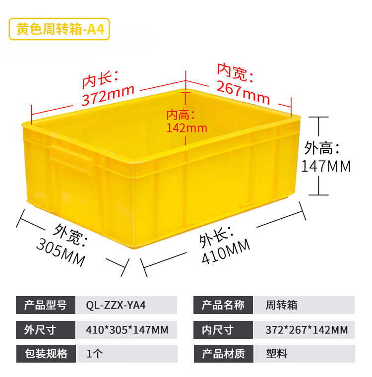 Guxiang turnover box plastic rectangular thickened fish and turtle logistics plastic box large storage storage box basket yellow QL-ZZX-YA4 boxes 410*305*147mm