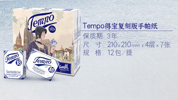 TEMPO Yibo same style handkerchief paper replica classic 4 layers 7 sheets * 12 packs wet and not broken tissue paper packet