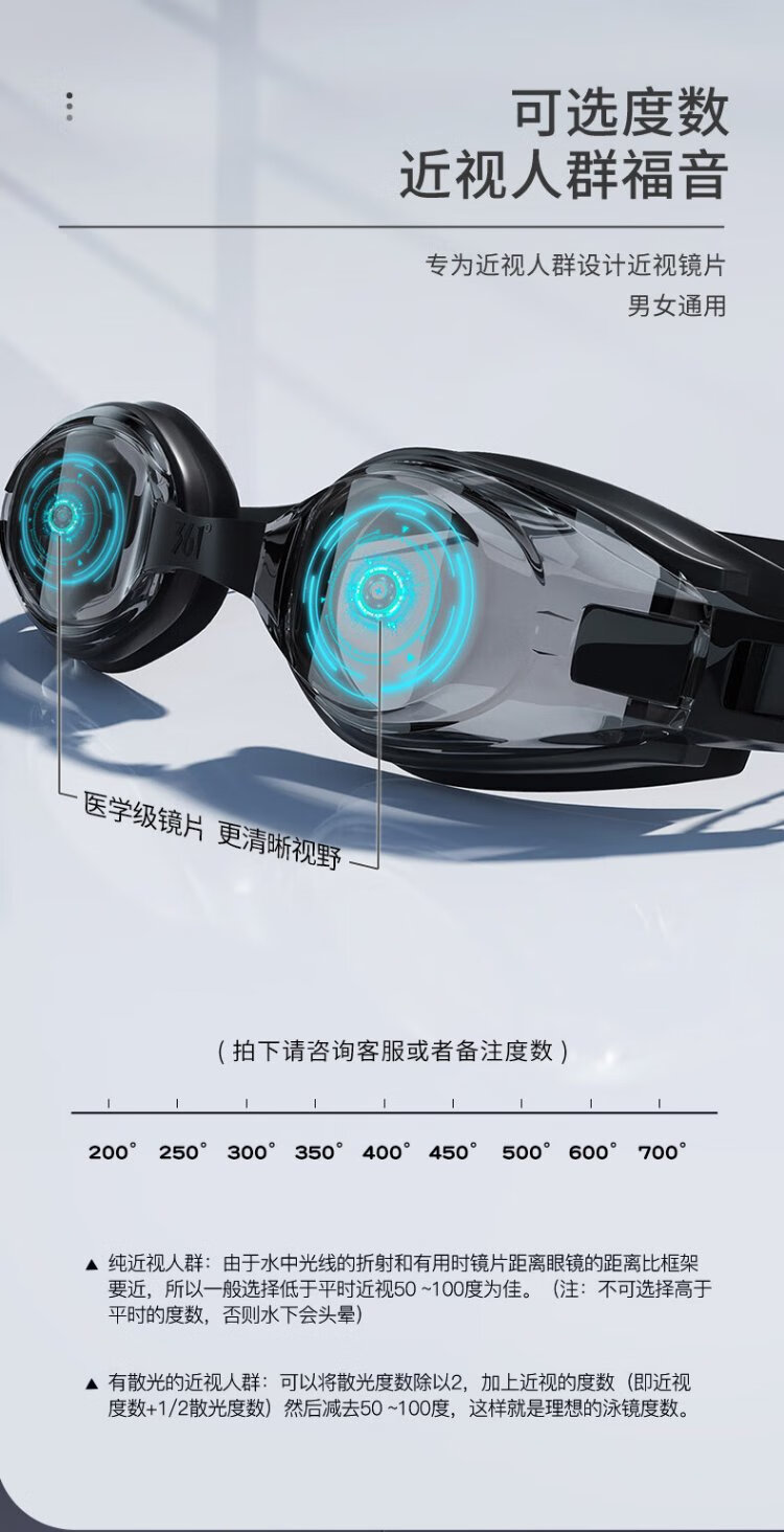 361°泳镜高清防水防雾近视度数游泳眼镜男女成人专业潜水装备