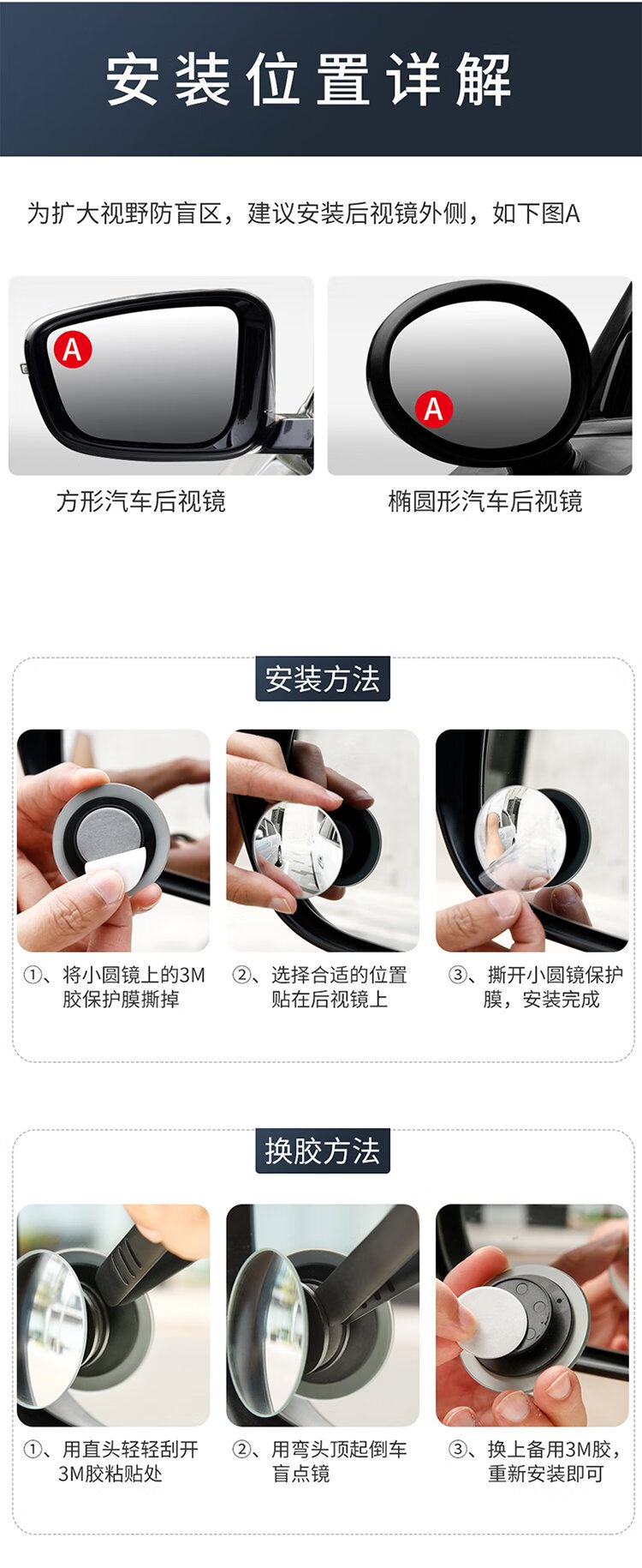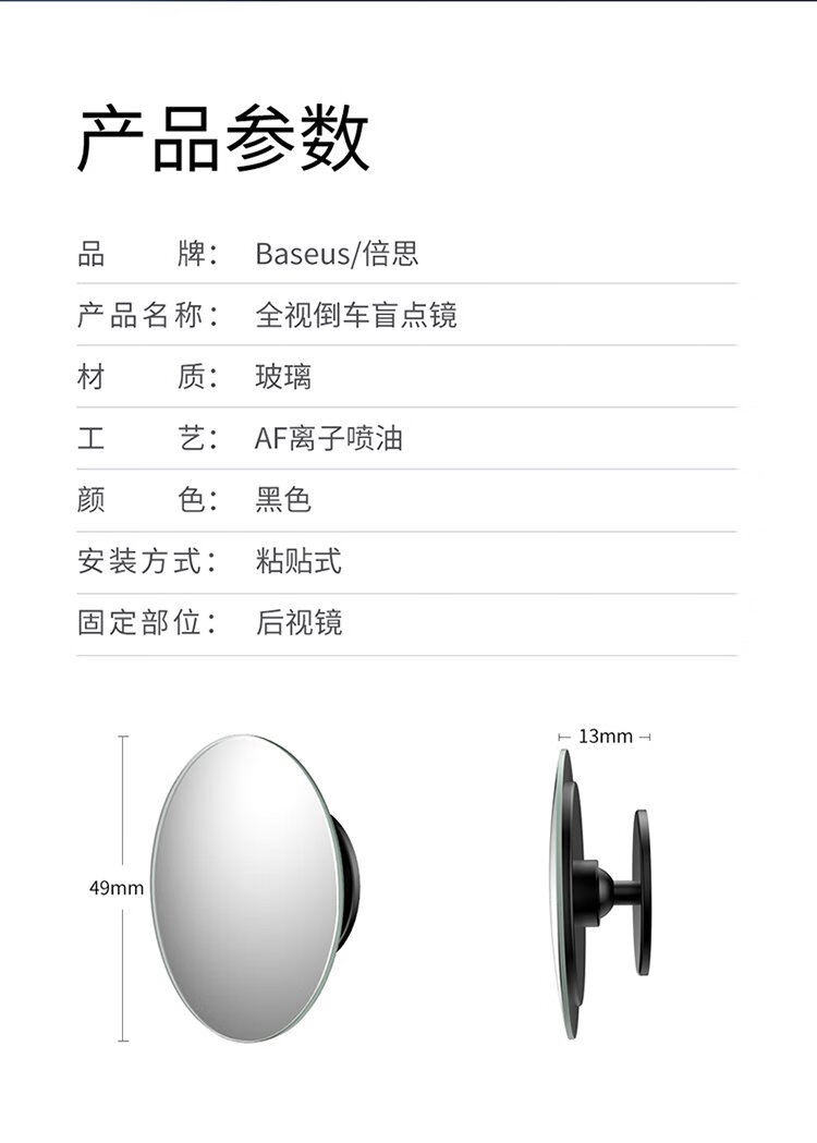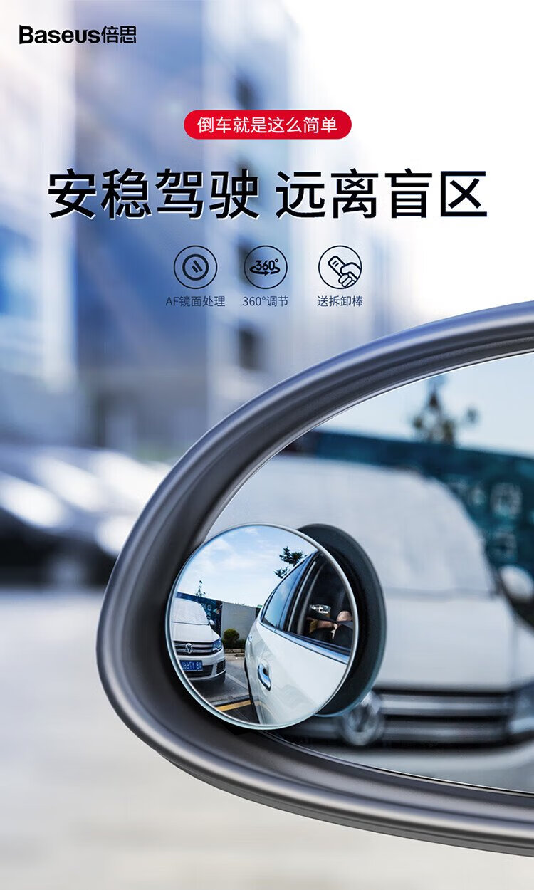 Baseus car rearview mirror small round mirror reversing auxiliary mirror wide-angle adjustable blind spot reversing artifact adapted to Xiaomi su7