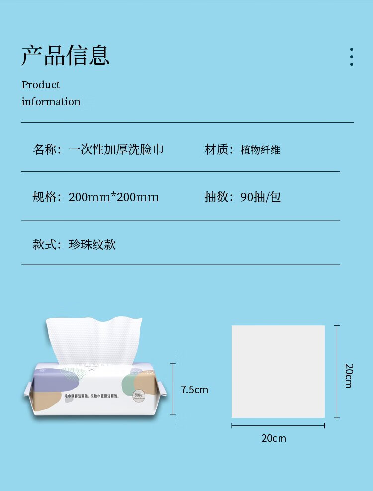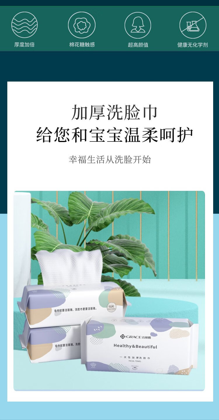Grace (Grace) portable disposable face washcloth for home and travel, pearl pattern soft towel, 3 packs, 20*20cm, 90 pieces/pack