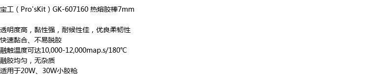 Pro skit hot melt glue sticks 10 sticks, diameter 7mm GK-607160