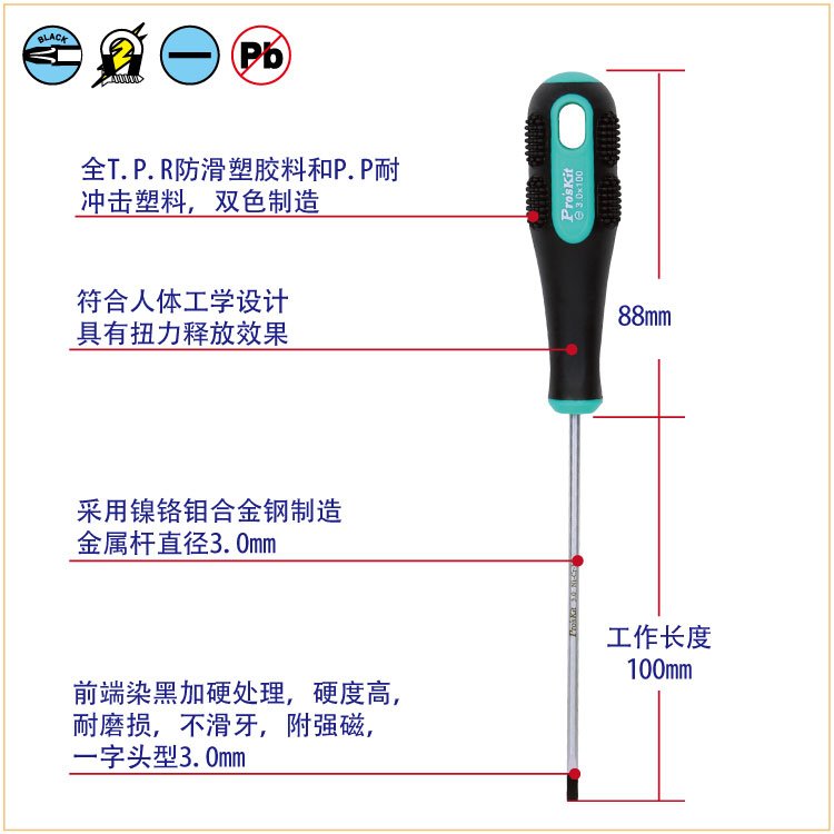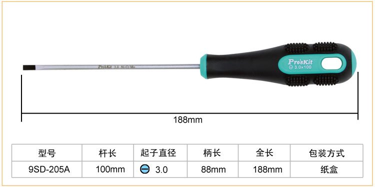 Baogong (Pro sKit) 9SD-205A green and black two-color screwdriver slotted screwdriver -3.0 3.0x100mm